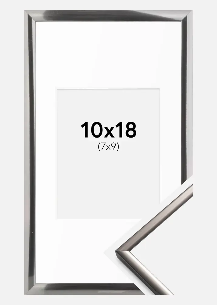 Тази елегантна рамка от стомана има лъскава повърхност и е идеална за снимки с размер 8x10 см. Ширината на рамката е 9 мм, а дълбочината 14 мм, което осигурява стилен контур.