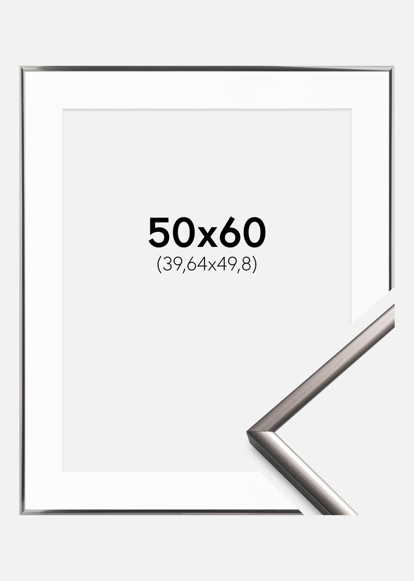 Блестящият стоманен цвят и тънкият профил от 9,8 мм ширина на рамката придават модерно усещане, докато дълбочината й от 16,5 мм добавя отличителна дименсия към вашата стенна декорация. Външните размери на рамката са 51,1x60,9 см, което я прави изразителен, но все пак елегантен детайл в стаята ви. Рамката е снабдена с метални държачи на гърба, което позволява лесно закачане.