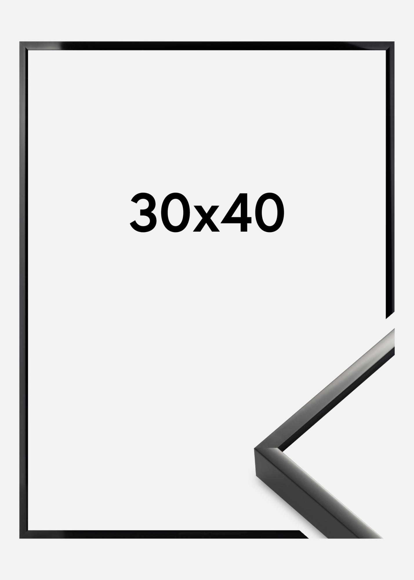 Елегантна премиум рамка с високоблестящ тънък черен профил, която се вписва идеално в съвременен изчистен интериор. Повърхността на рамката и минималистичното усещане в изисканата конструкция я правят прекрасен избор за използване с графични постери и черно-бели фотографии. Рамката за картини е изработена от алуминий и се предлага в много различни размери, което я прави добър вариант, когато искате да създадете стена с картини в няколко различни формата, обединени от избора на рамка.
