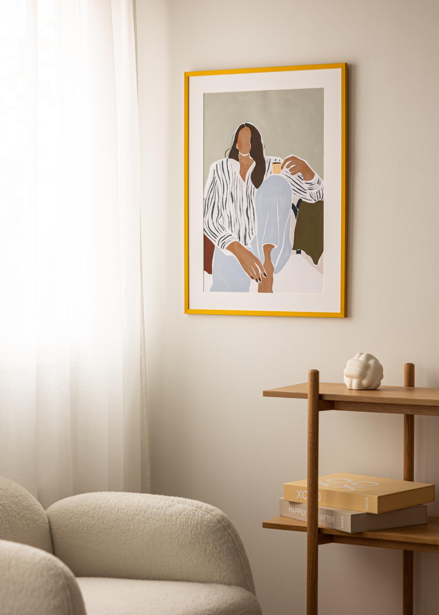 Тази жизнена рамка е от датската компания Incado и е част от серията NordicLine. Рамката е изработена от дърво с минималистичен квадратен профил, където ширината и дълбочината на лентата са по 15 мм. Повърхността на рамката е фолирана, но стилно матова в прекрасен жълт нюанс, който придава живот на вашите стени.