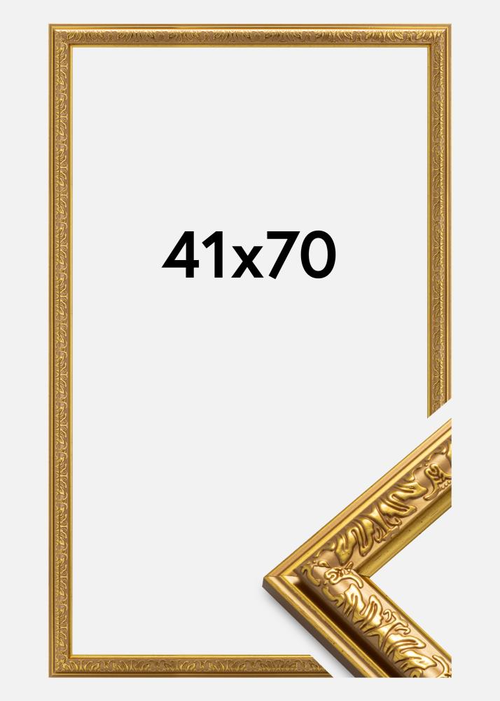 С рамка с ширина от 28 мм и дълбочина 20 мм, тази фоторамка придава стабилно усещане и характерен вид. Размерът на рамката, 41 х 70 см, я прави идеален избор за представяне на по-големи изображения или плакати със стил. Нека тази златна рамка стане величествена част от домашния ви интериор.