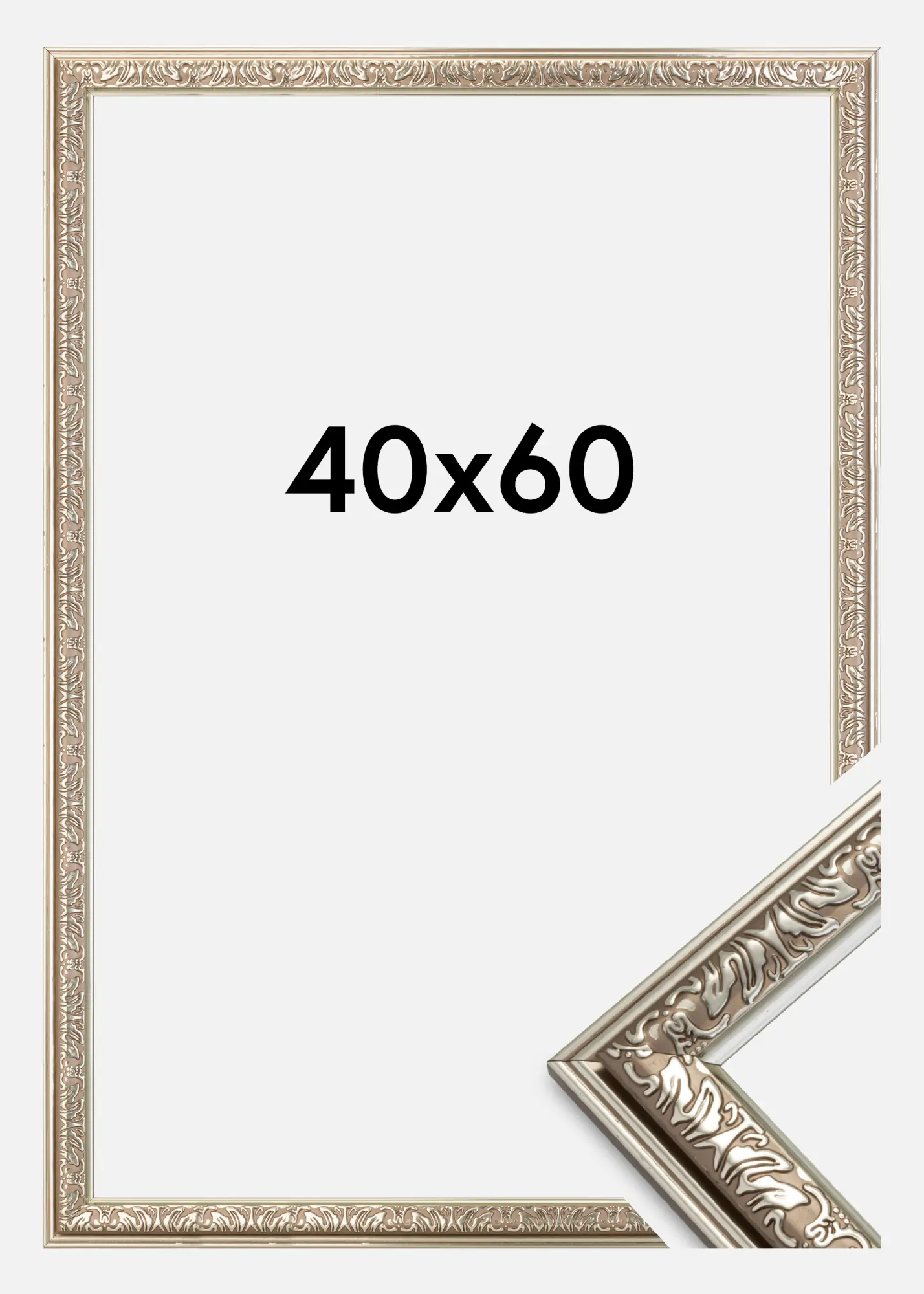 Носталгия е стилна сребърна рамка в ретро стил с красиви орнаменти. Подходяща е, когато търсите широка ретро рамка за вашите най-фини снимки.
