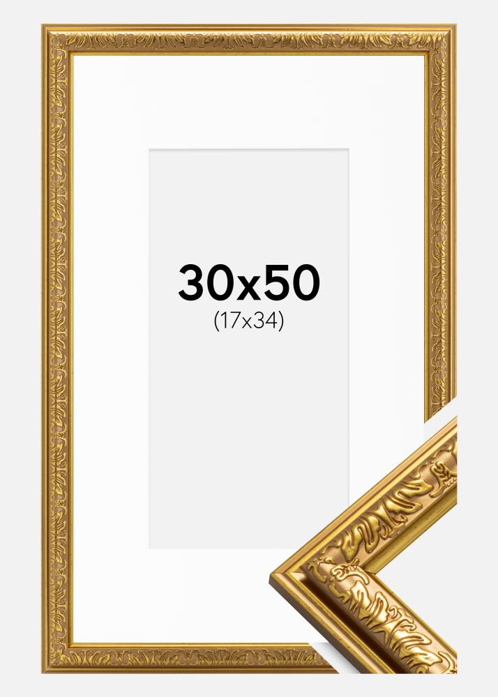 Рамка Nostalgia Златно 30x50 cm - Паспарту бяло 18x35 cm