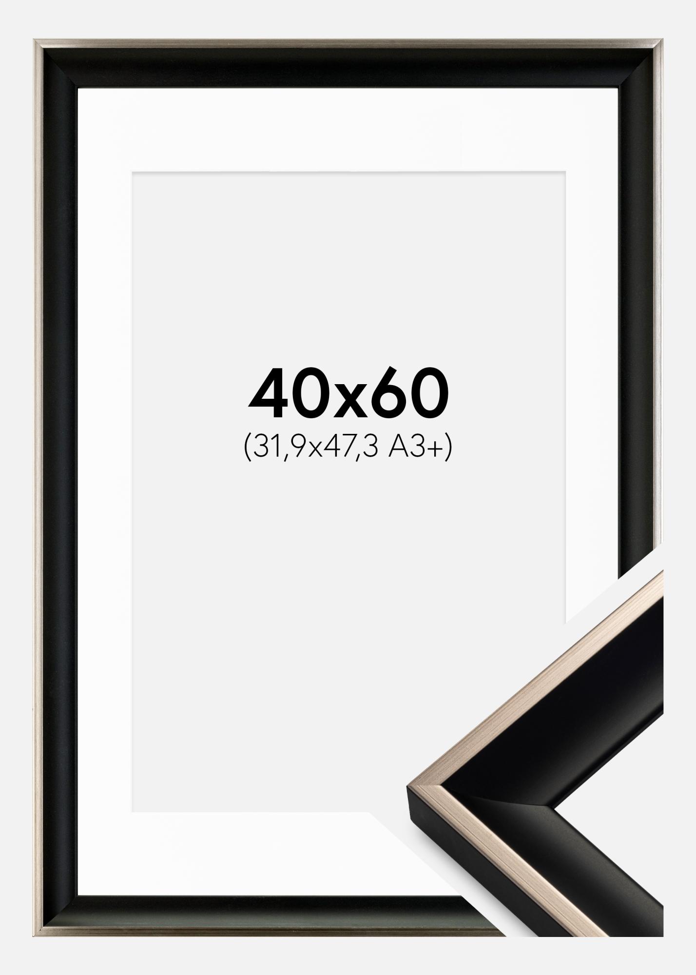 Рамка Öjaren Черно-сребърно 40x60 cm - Паспарту бяло 32,9x48,3 cm (A3+)