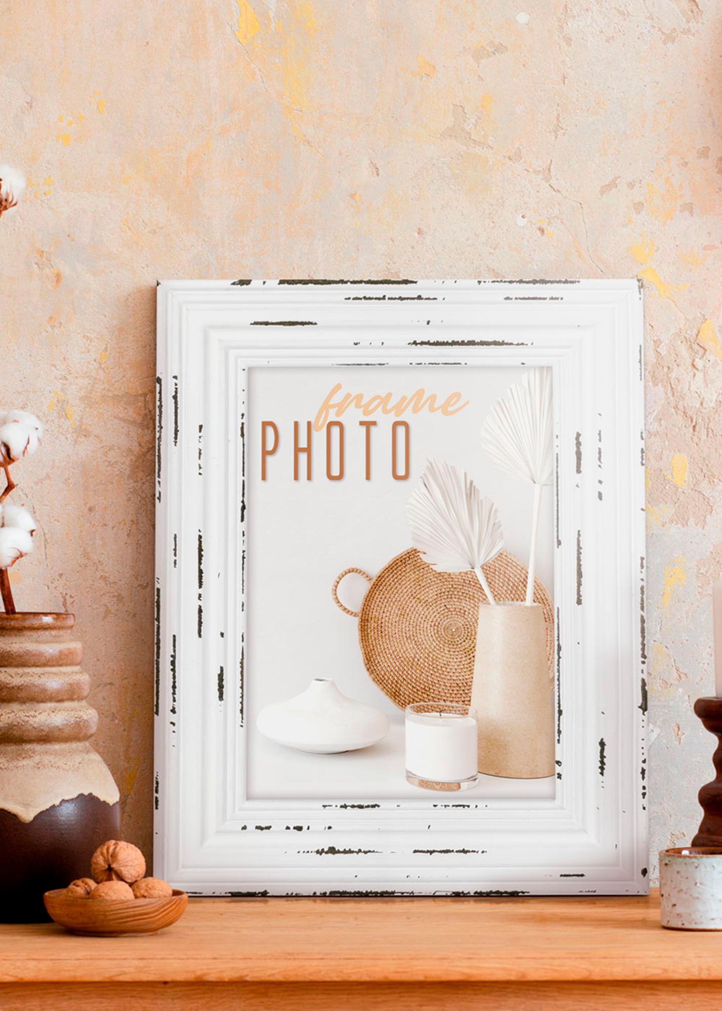 Дайте на вашите спомени уникална рамка с тази очарователна фоторамка в винтидж стил. С размери 10x15 см, тя е перфектна за да акцентира на вашите любими снимки. Износената бяла повърхност се допълва от тъмни акценти, които придават автентично усещане за отминали времена.