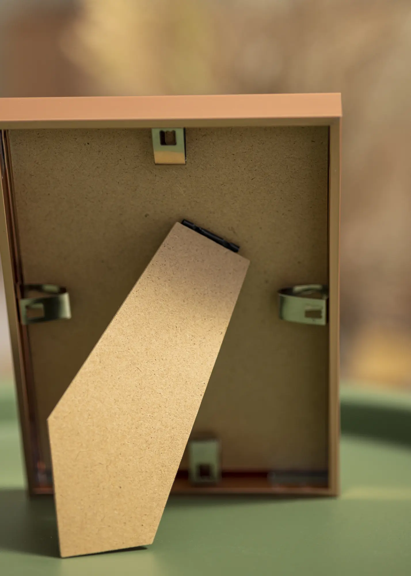 Тази фоторамка е изработена от висококачествен алуминий, който осигурява лека, но стабилна конструкция. Цветът розово злато добавя топлина и лукс към дома ви, като същевременно предпазва и подчертава снимките ви по най-добрия начин.
