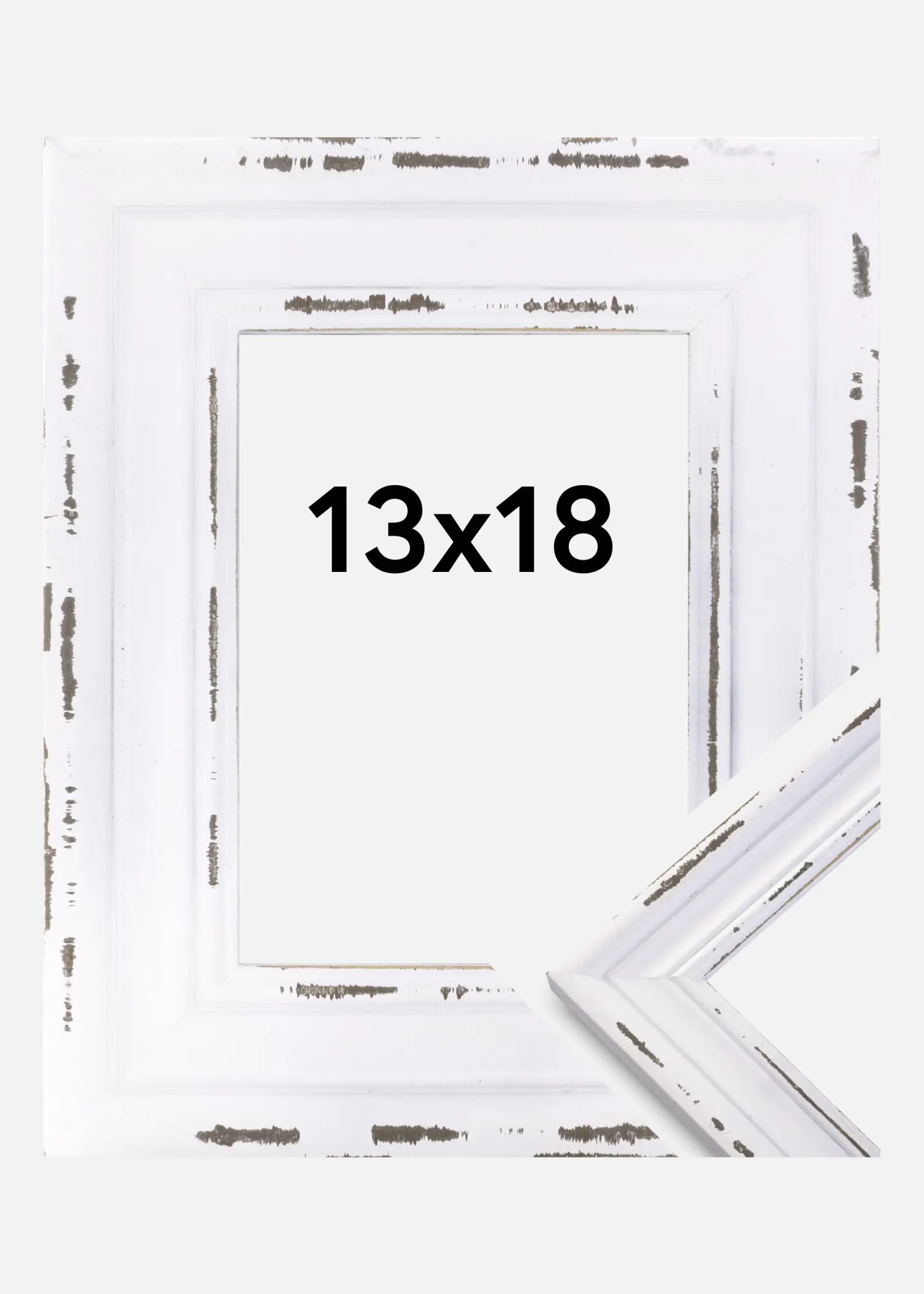 Ако нямате късмета да наследите стари рамкирани семейни фотографии, можете сами да създадете тези картини. Тук имаме декоративно износена рамка, която е идеална за целта! Рамката е бяла с класически профилиран списък и изтъркани участъци, където дървото се вижда. Изберете между няколко различни размера!