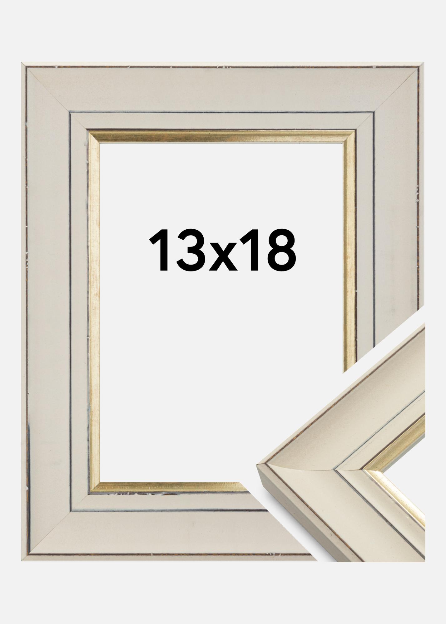 Фоторамка в класически стил с вълнуващо ретро усещане. Рамката има износен профил в бяло с красива златна ръба най-близо до изображението, с неутрален дизайн и избор на цвят това е рамка, която пасва в почти всяка среда и за всички видове мотиви.