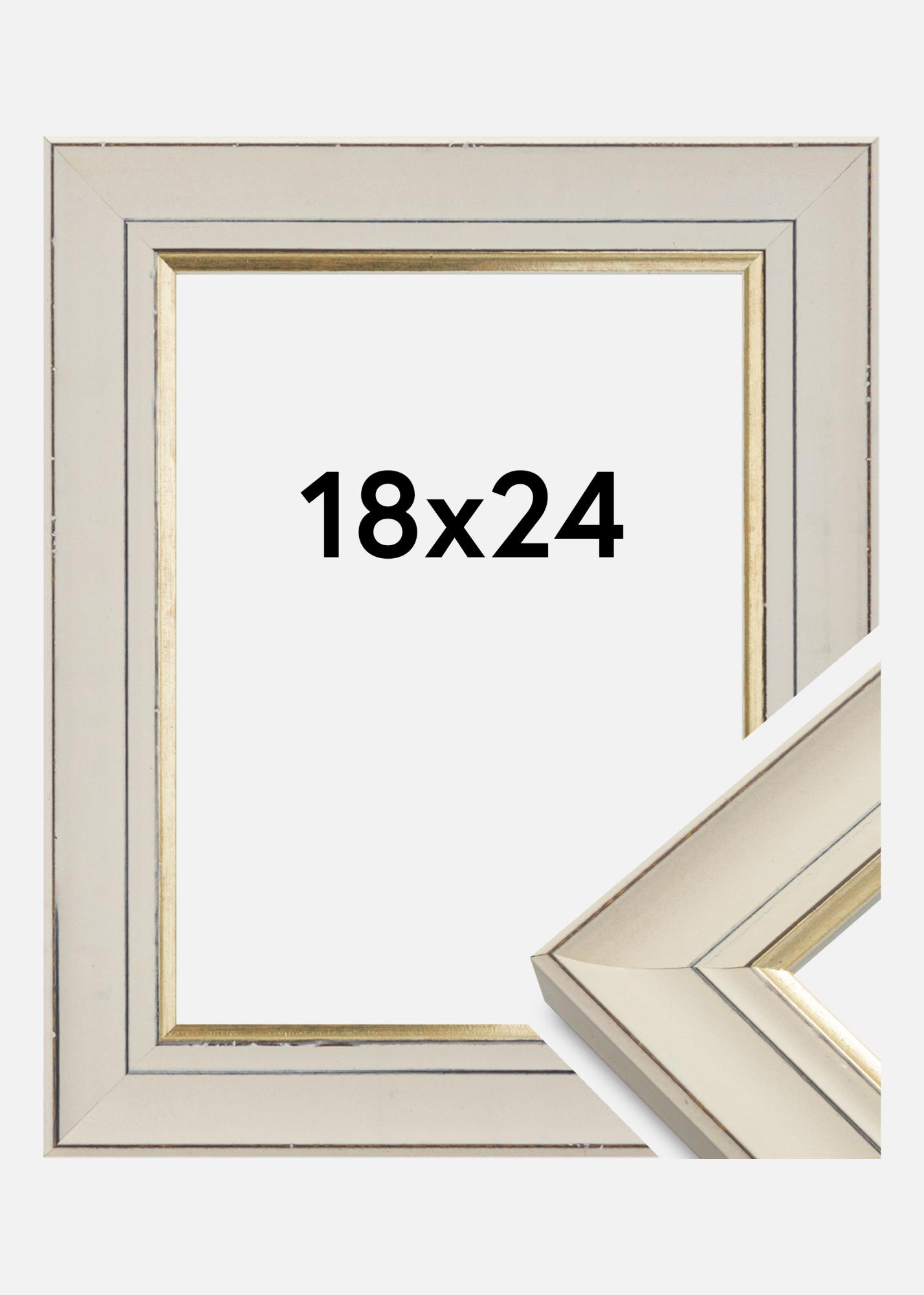 Фоторамка в класически стил с вълнуващо ретро усещане. Рамката има износен профил в бял цвят с елегантен златист кант най-близо до мотива, със своя неутрален дизайн и избор на цветове това е рамка, която пасва в почти всяка среда и за всички видове мотиви.