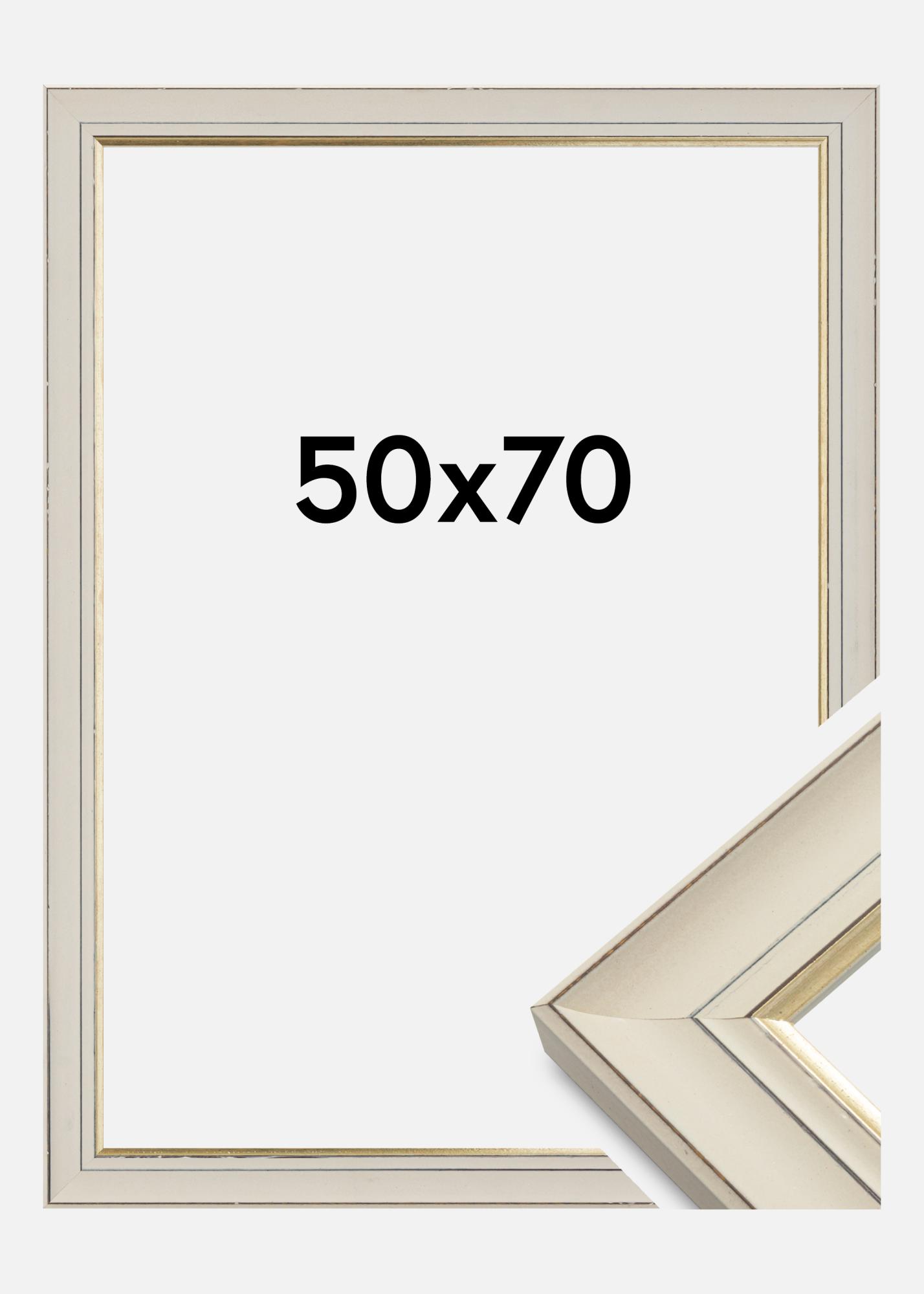 Рамка за снимки в класически стил със завладяващо ретро усещане. Рамката има изтъркана профила в бяло с елегантен златист ръб най-близо до мотива; със своя неутрален дизайн и избор на цветове, това е рамка, която подхожда на почти всякаква обстановка и на всички видове мотиви.