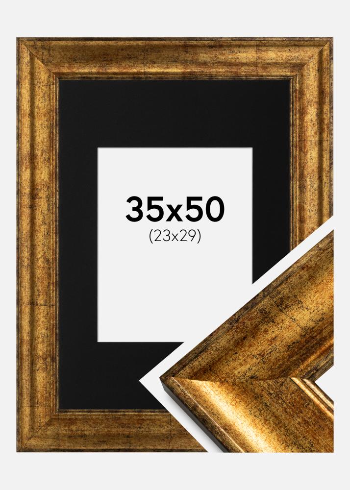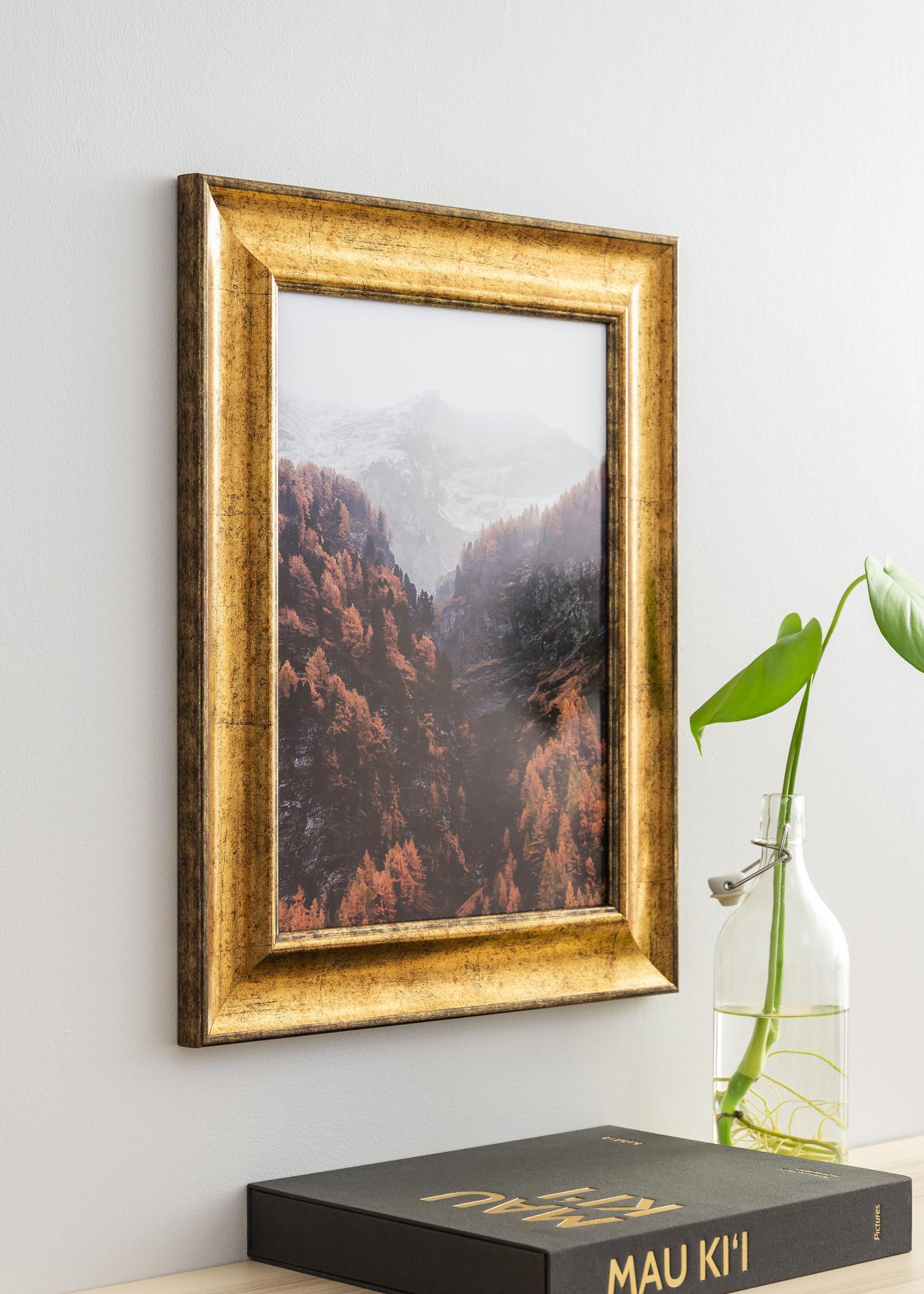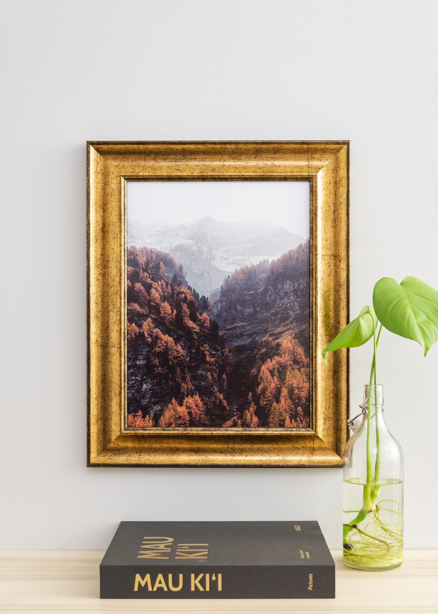 Преобразете вашето произведение на изкуството или снимка в елегантна фокусна точка с нашата златна рамка с черно паспарту. Матово-златният оттенък на рамката допълва черното паспарту и създава изискана контрастност, която подчертава вашата снимка с размер 24x30 см. Щедрата широчина от 64 мм придава стабилно и луксозно усещане, докато дълбочината от 23 мм добавя отличителен профил.