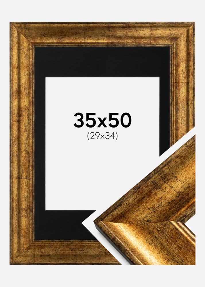 Превърнете дома си в персонална художествена галерия с тази елегантна златна рамка с черен паспарту. Рамката, която е 64 мм широка и 23 мм дълбока, прави впечатляващо и отличително впечатление на стената. Матова златна нюанса перфектно допълва черното паспарту, създавайки изискана контраст, който подчертава вашата картина с размер 30x35 см.