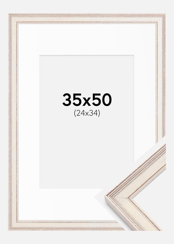 Изживейте елегантната простота на нашата бяла рамка, която идва с бял паспарту, за да подчертае вашата картина с размер 25x35 см. Чистият бял цвят и матово покритие на рамката придават изискан допир на избраното от вас произведение или снимка, докато дискретната ширина от 25 мм не отвлича вниманието от изображението.