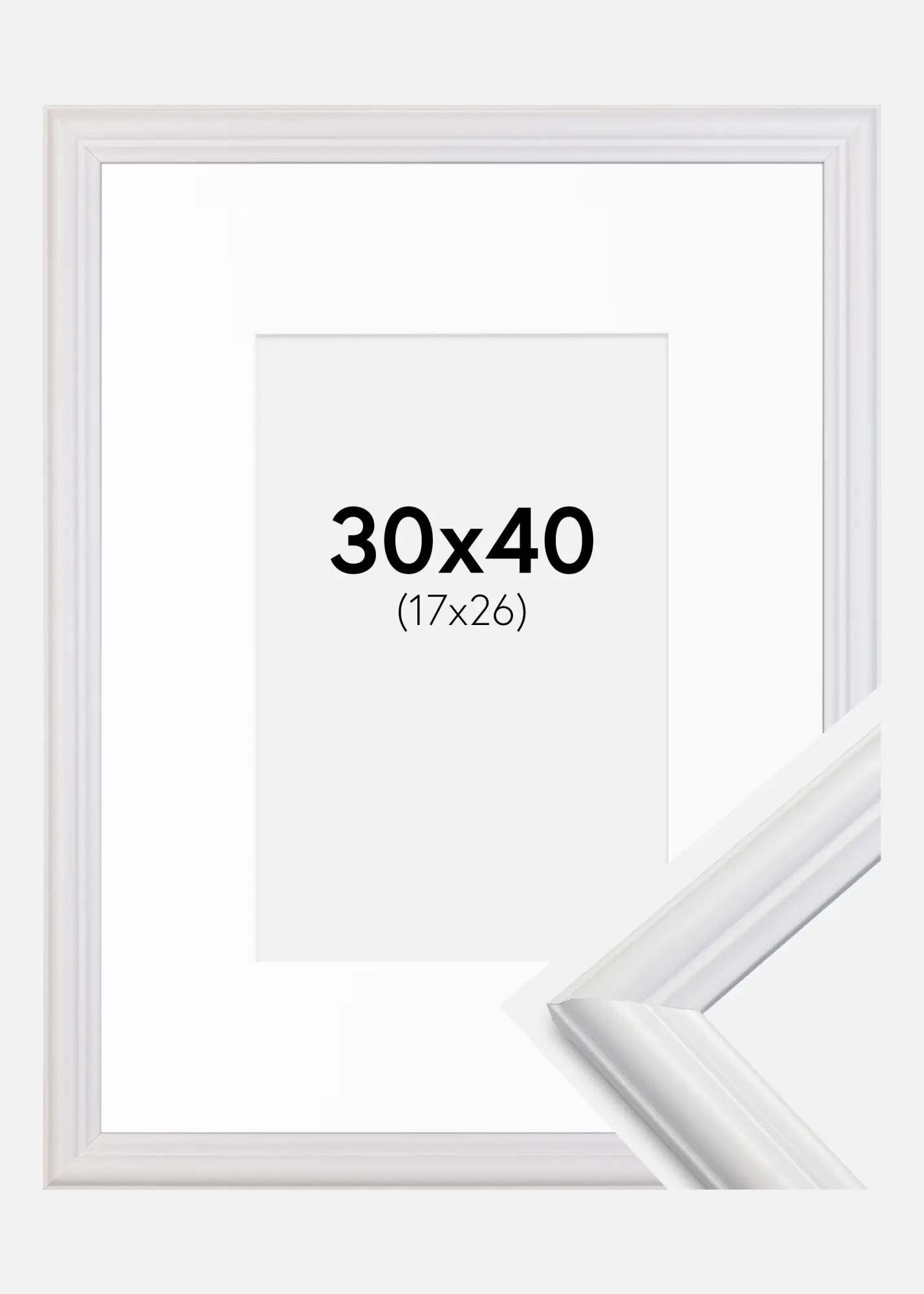 Създайте елегантна рамка за вашите любими снимки с нашата бяла рамка, пълна с паспарту. Белият цвят както на рамката, така и на паспартото придава чист и единен вид, който е идеален за всяка стая. С ширина от 24 мм и дълбочина от 19 мм, рамката предлага отличителен и модерен усет на вашата стенна декорация.