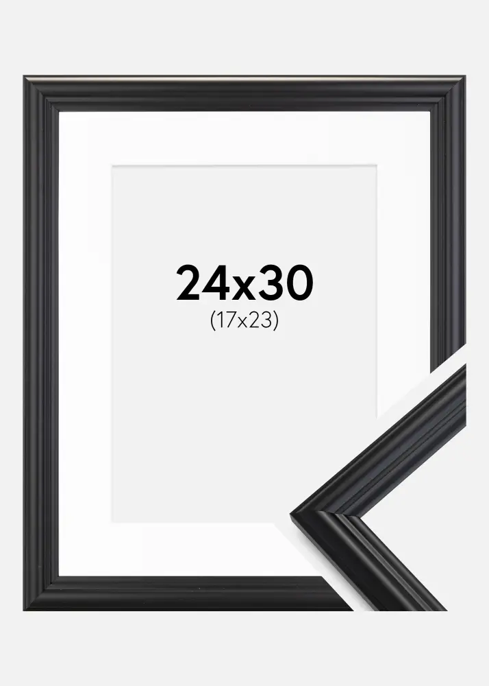 Рамката има матово черно покритие, което допълва всякакви стилове на интериор, от модерен до класически. С широчина от 24 мм и дълбочина от 19 мм, рамката осигурява здрава и отличителна граница около вашето изображение. Белият паспарту не само служи като естетическа граница, но също така помага за запазването на изображението, като го държи далеч от стъклото.