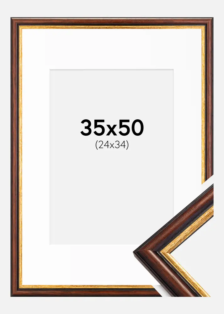 Дайте на любимите си снимки вниманието, което заслужават, с елегантна златна рамка, допълнена с бял паспарту. Тази изискана рамка е перфектна за изтъкване на изображение с размери 25x35 см, а матовото ѝ покритие придава фина, но все пак луксозна атмосфера на вашето пространство. С ширина на рамката от 24 мм и дълбочина от 19 мм, тя създава отличителен профил, който привлича погледа на наблюдателя.