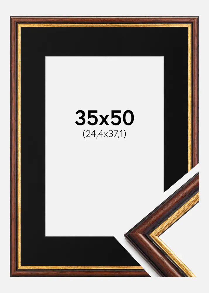 Подобрете изживяването си с изображение с елегантна златна рамка, допълнена от черен паспарту. Тази изискана комбинация осигурява отличителна рамка за вашата фотография или произведение на изкуството, която подчертава мотива и създава дълбочина в презентацията. Паспартуто, с неговия смел черен цвят, служи като визуална пауза, която помага на окото да се съсредоточи върху изображението в средата.
