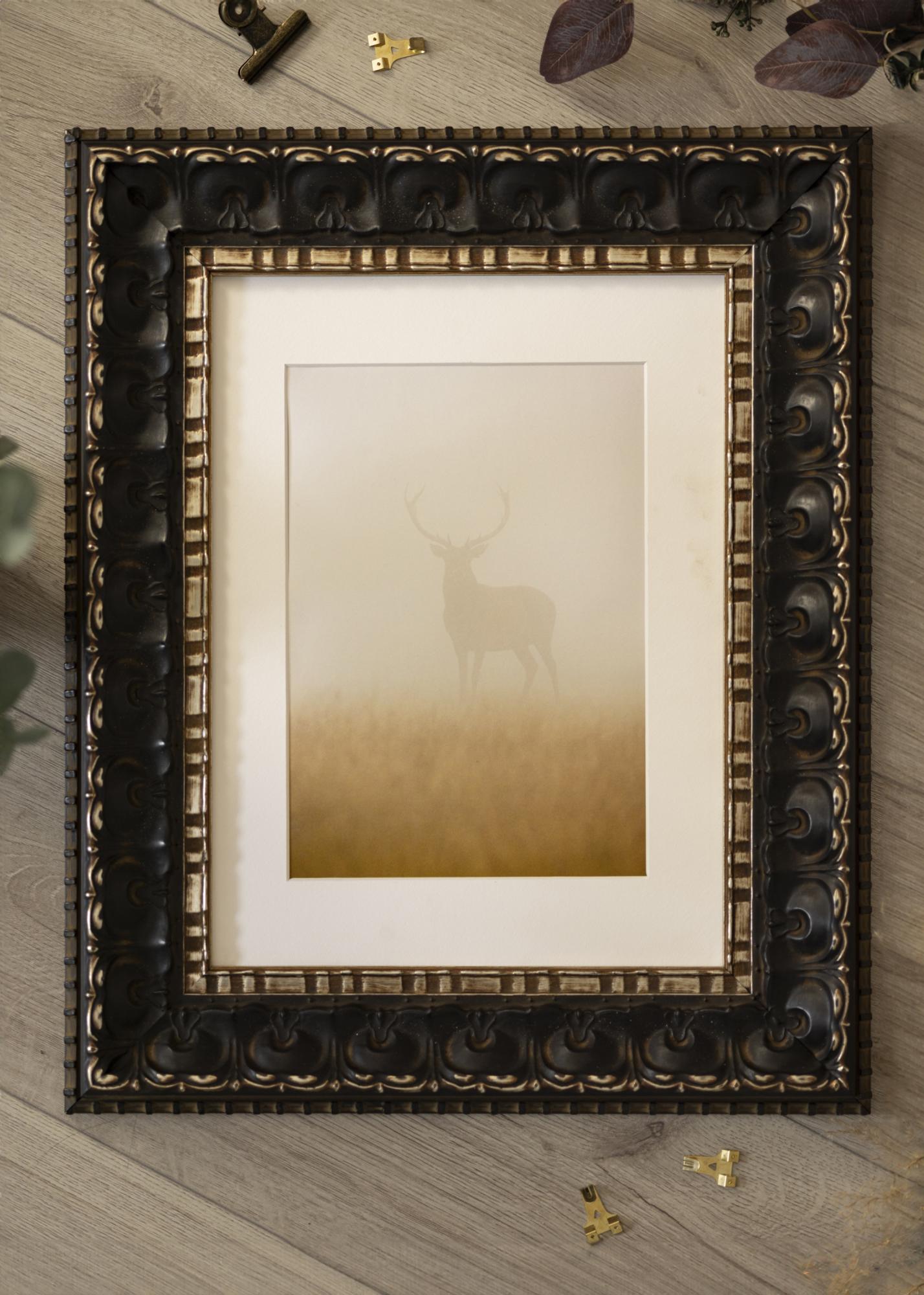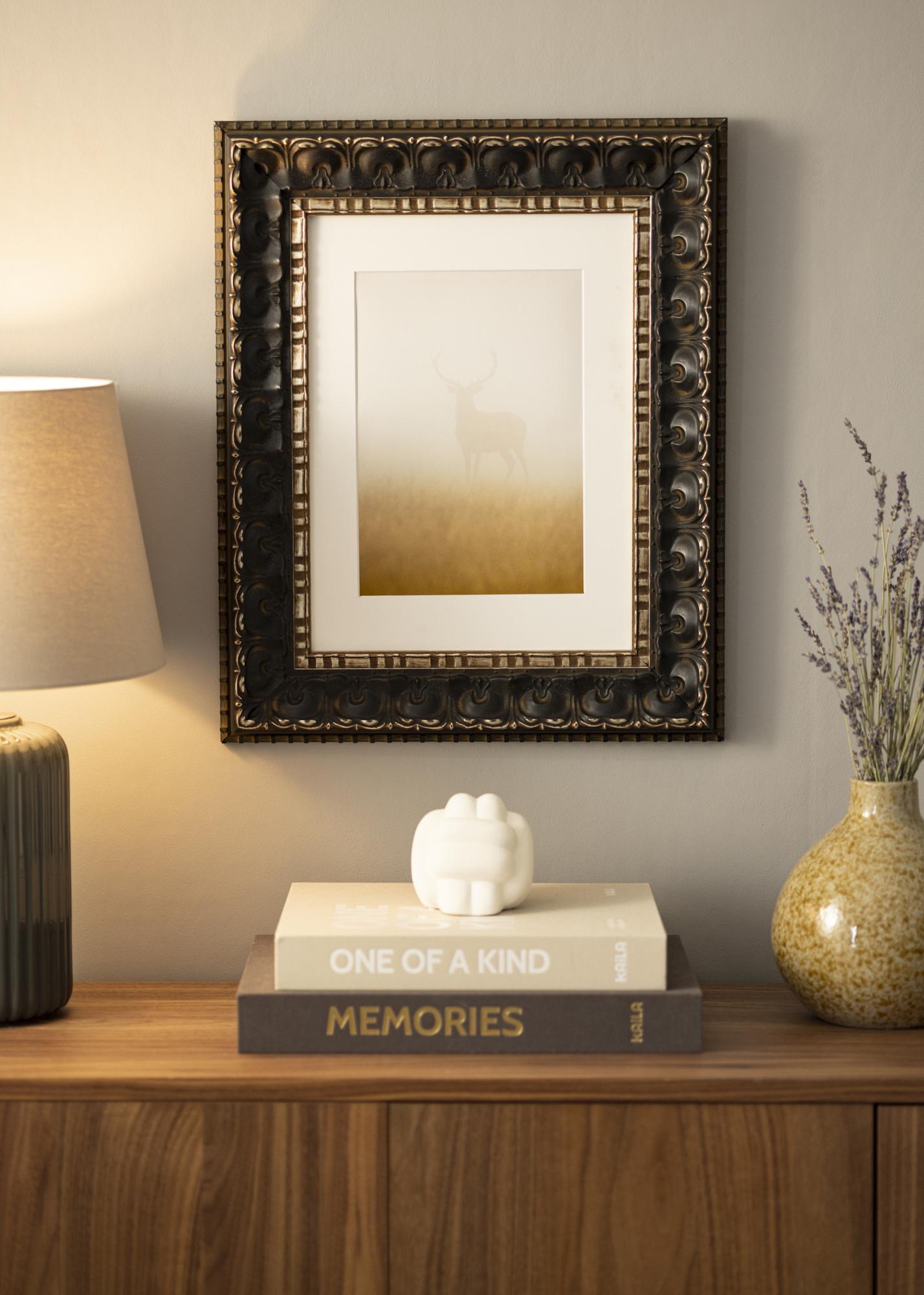 Рамка Skokloster Черна е перфектното решение за вас, ако търсите елегантно и класическо рамкиране за вашите снимки или произведения на изкуството. Със своята дълбока черна основа и антични златни детайли, тази фоторамка предлага изискано и луксозно усещане, което подхожда на всеки дом. Детайлните мотиви по краищата усилват нейния вечен дизайн и придават усещане за античен чар.