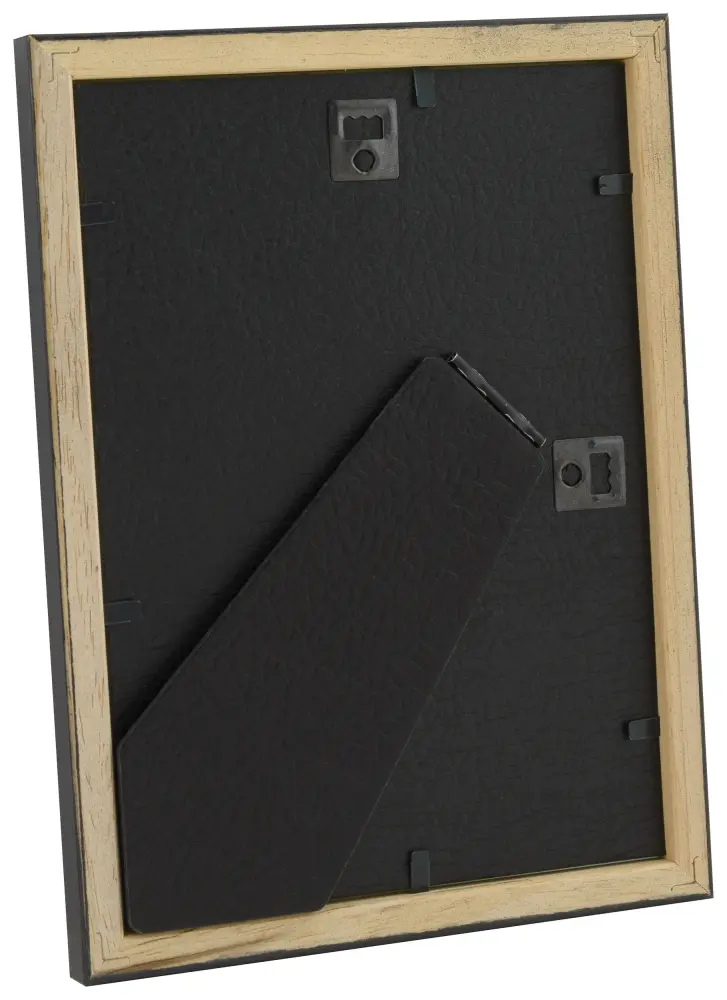 Поставете своята снимка, картина или постер в тази стилна рамка! Рамката е изработена от черно боядисано дърво и има антирефлексно стъкло. Гърбът и кракът за подпиране са облицовани с имитация на черна кожа, която придава допълнително луксозно усещане.