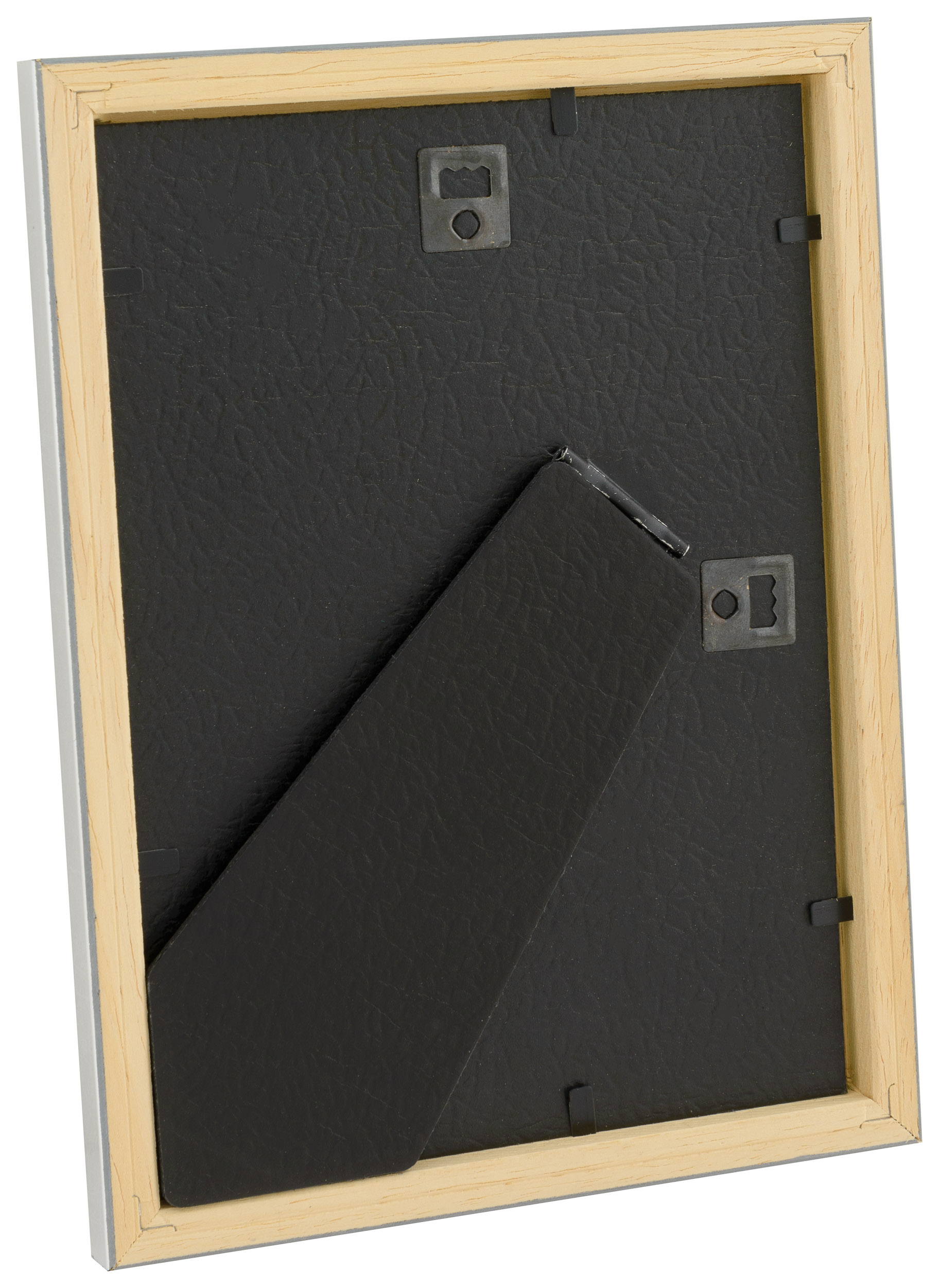 Поставете вашата снимка, ваша картина или вашия постер в тази стилна рамка! Рамката е изработена от сребърно боядисано дърво и има антирефлексно стъкло. Гърбът и опората са облечени в черна кожа имитация, която придава допълнително луксозно усещане.