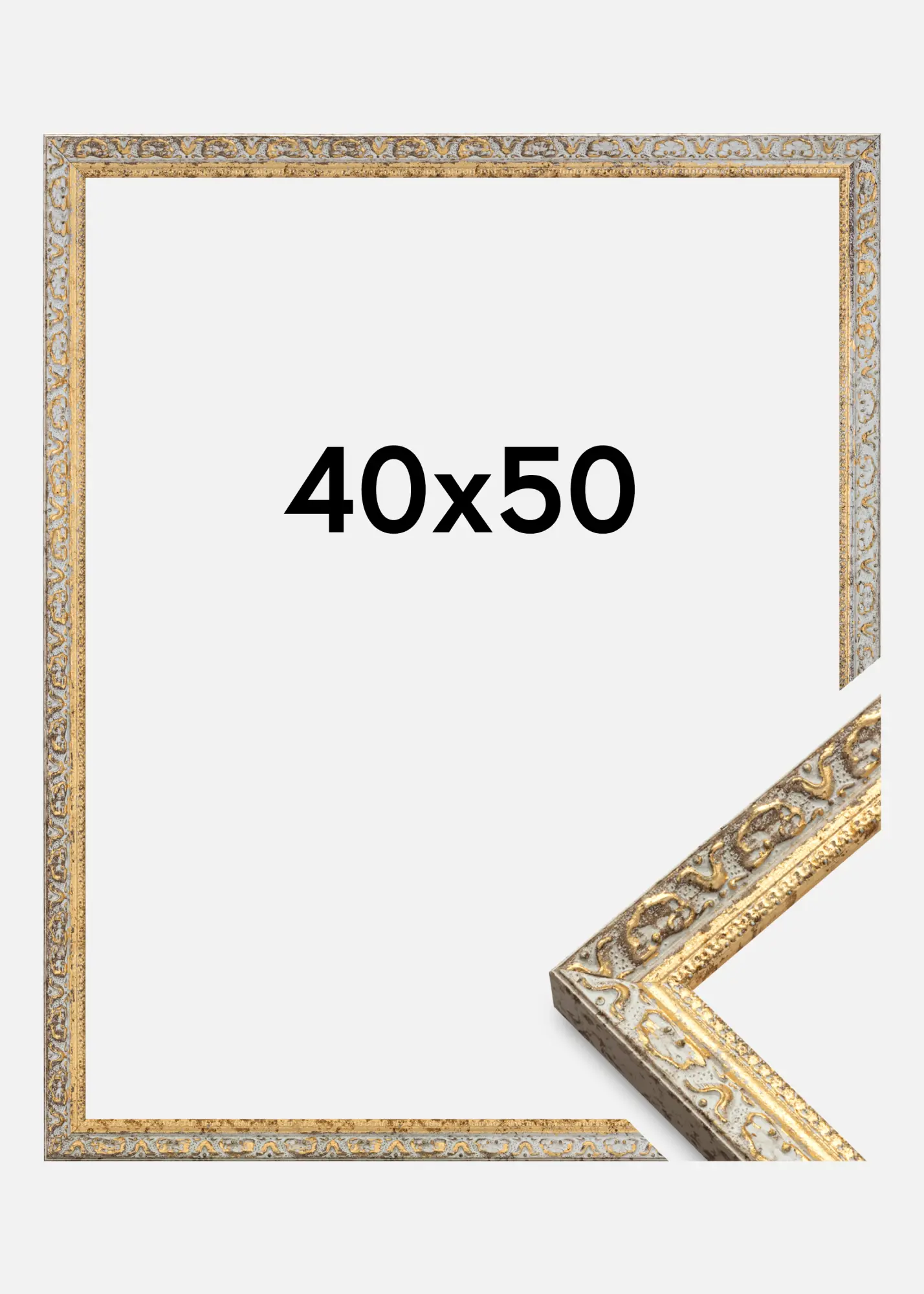 Елегантна ретро вдъхновена рамка за картини с високо качество и ексклузивен дизайн в сребро и злато, произведена в Италия. Придава допълнителен блясък на вашите най-красиви снимки, особено в комбинация с паспарту (не е включено)
