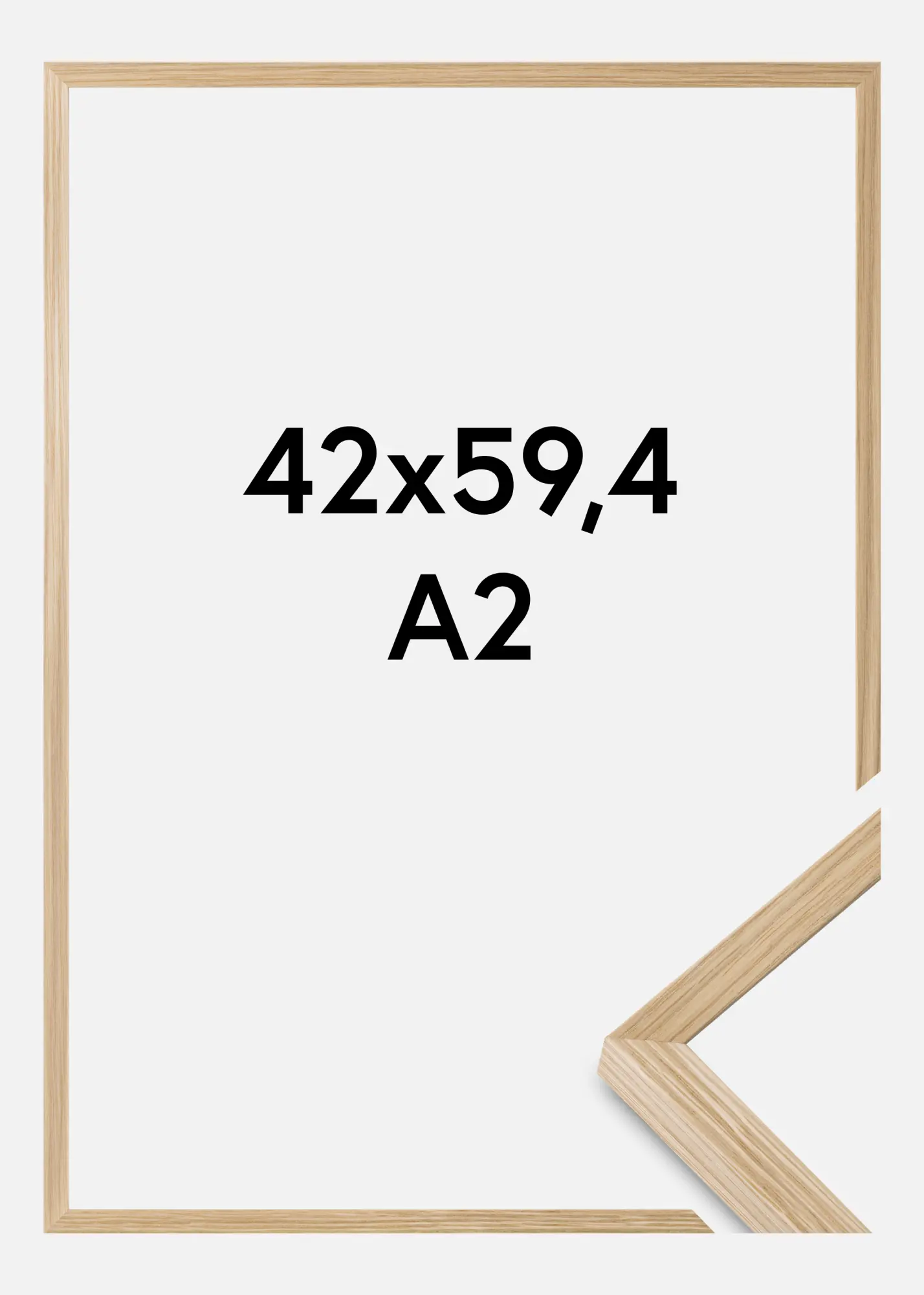 С размери 42 x 59,4 см, тази рамка идеално подхожда за всички плакати или произведения на изкуството с размери A2-стандарт. Тя не е само функционална, но и естетическо допълнение към вашия дом или офис. Изберете нашата дъбова рамка, за да създадете вечни впечатления във вашето пространство.