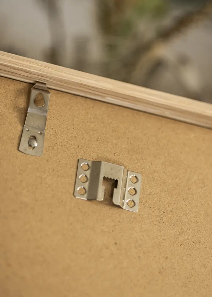 Със своята универсалност рамката може да бъде окачена както хоризонтално, така и вертикално благодарение на предварително монтираните метални закачалки от задната страна. В допълнение, рамката е оборудвана с кристално чисто и неразбиващо се акрилно стъкло, което защитава вашето произведение на изкуството. Не забравяйте да отстраните защитните фолиа от двете страни на акрилното стъкло преди употреба, за да постигнете оптимална яснота. За личен почерк можете да байцвате или боядисвате рамката в желаната от вас нюанс, тъй като необработената повърхност лесно приема боя. Създайте уникална рамка за вашите спомени с тази универсална рамка с размери 70 x 100 см.