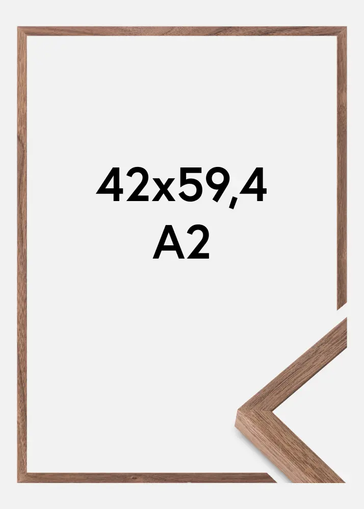 С размери 42 x 59,4 см (A2) тази рамка за картини пасва идеално на стандартни размери за изкуство и плакати. Дискретният дизайн допълва различни стилове на интериор и кара вашите изображения да изпъкват. Изберете нашата фоторамка от орех за безвременна и гъвкава решение за вашите стени.