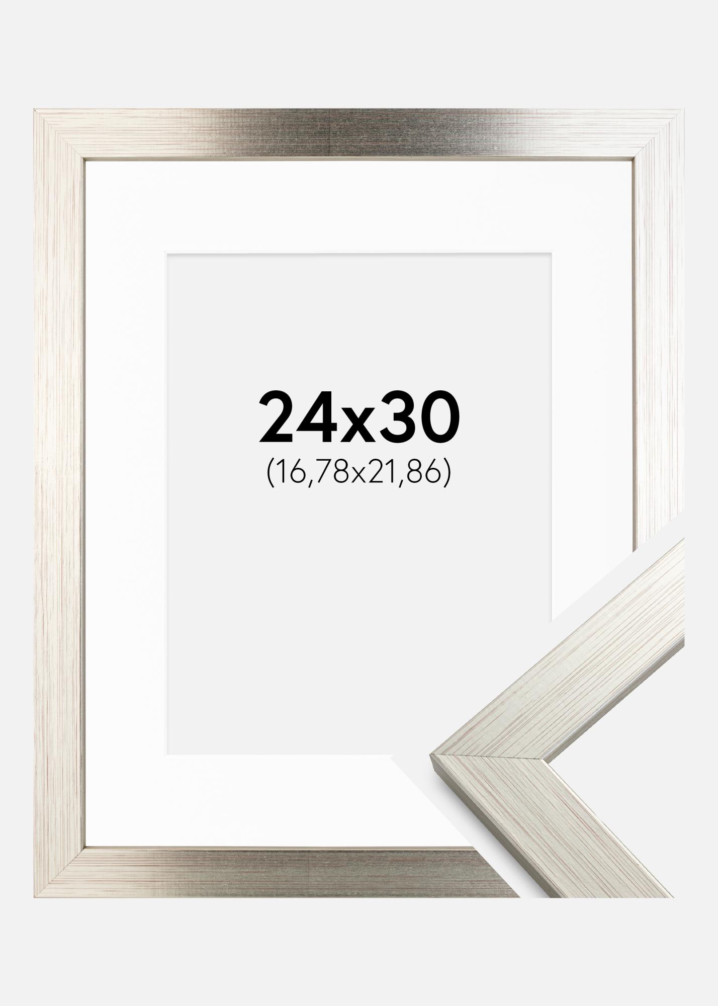 Рамка Сребро Wood 24x30 cm - Паспарту бяло 7x9 inches