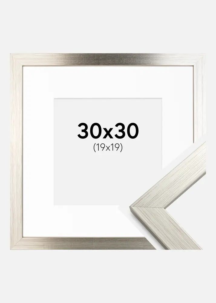 Рамка Сребро Wood 30x30 cm - Паспарту бяло 20x20 cm