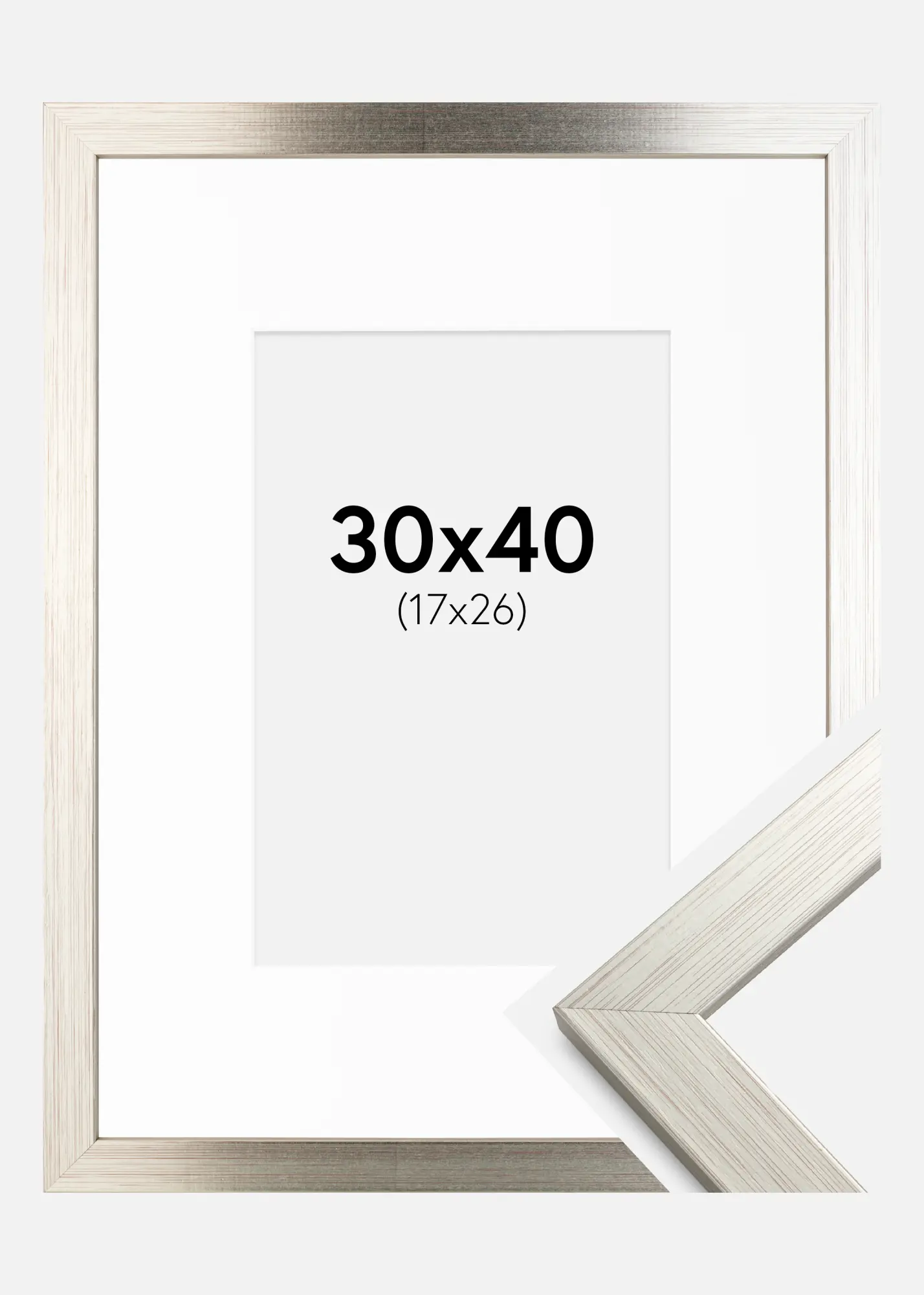 Рамка Сребро Wood 30x40 cm - Паспарту бяло 18x27 cm