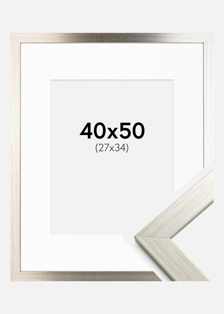 Рамка Сребро Wood 40x50 cm - Паспарту бяло 28x35 cm
