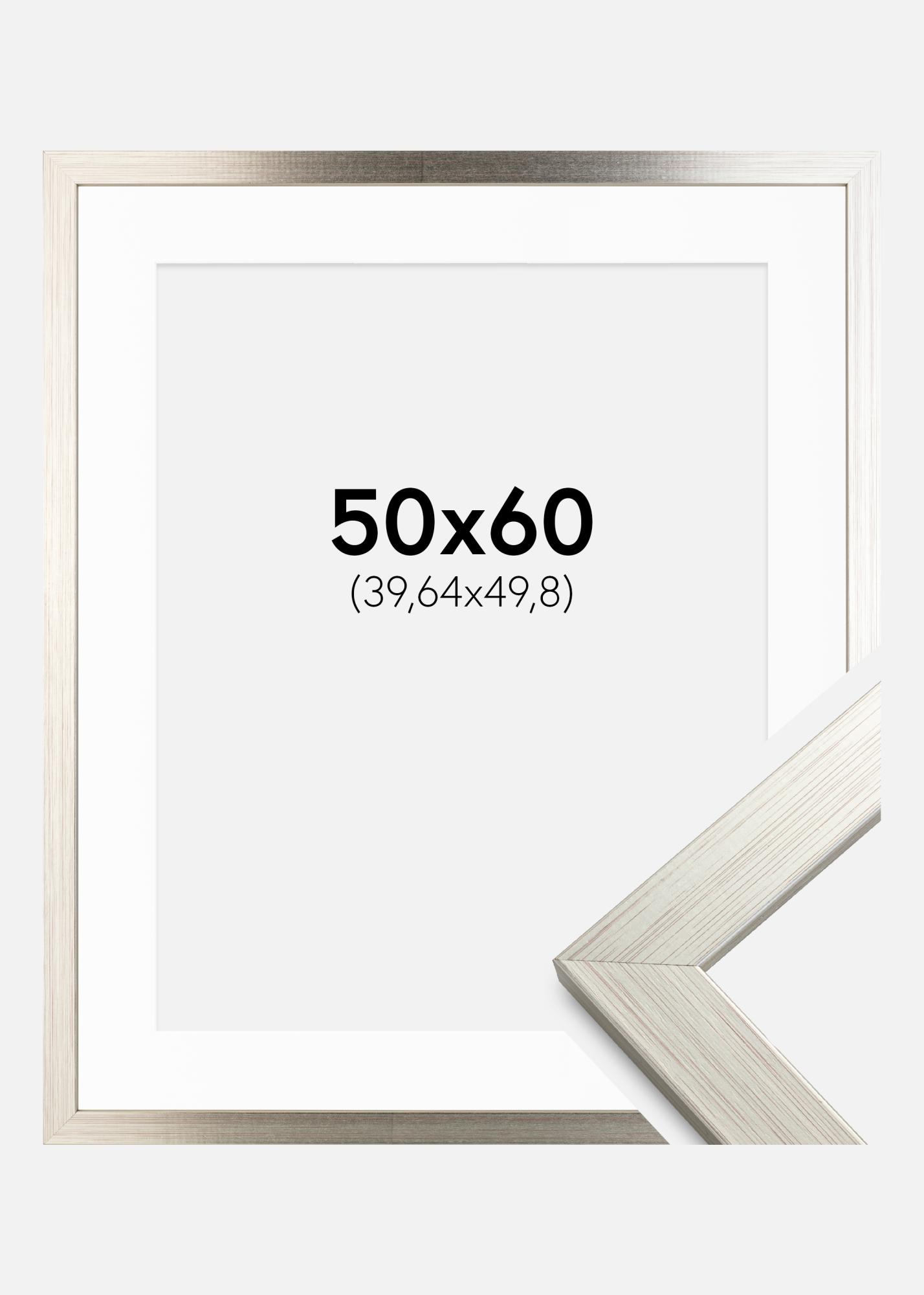 Рамка Сребро Wood 50x60 cm - Паспарту бяло 16x20 inches