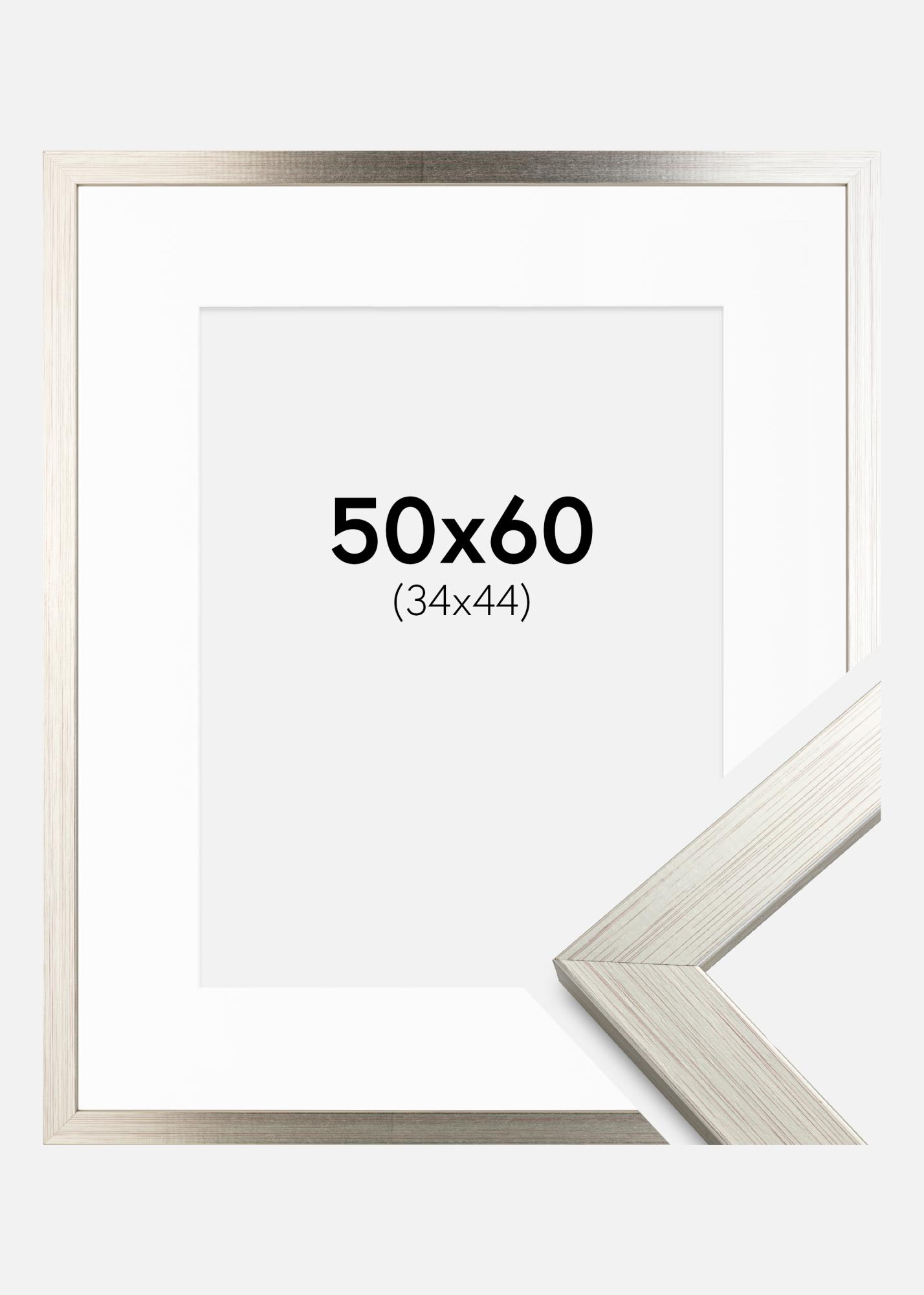 Рамка Сребро Wood 50x60 cm - Паспарту бяло 35x45 cm