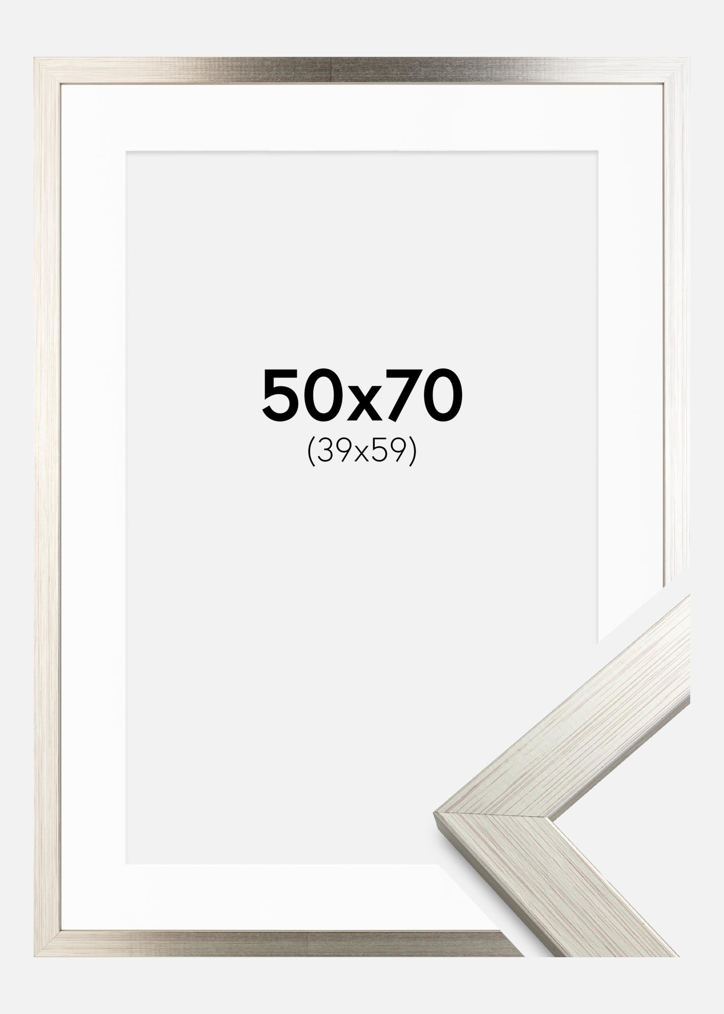Рамка Сребро Wood 50x70 cm - Паспарту бяло 40x60 cm