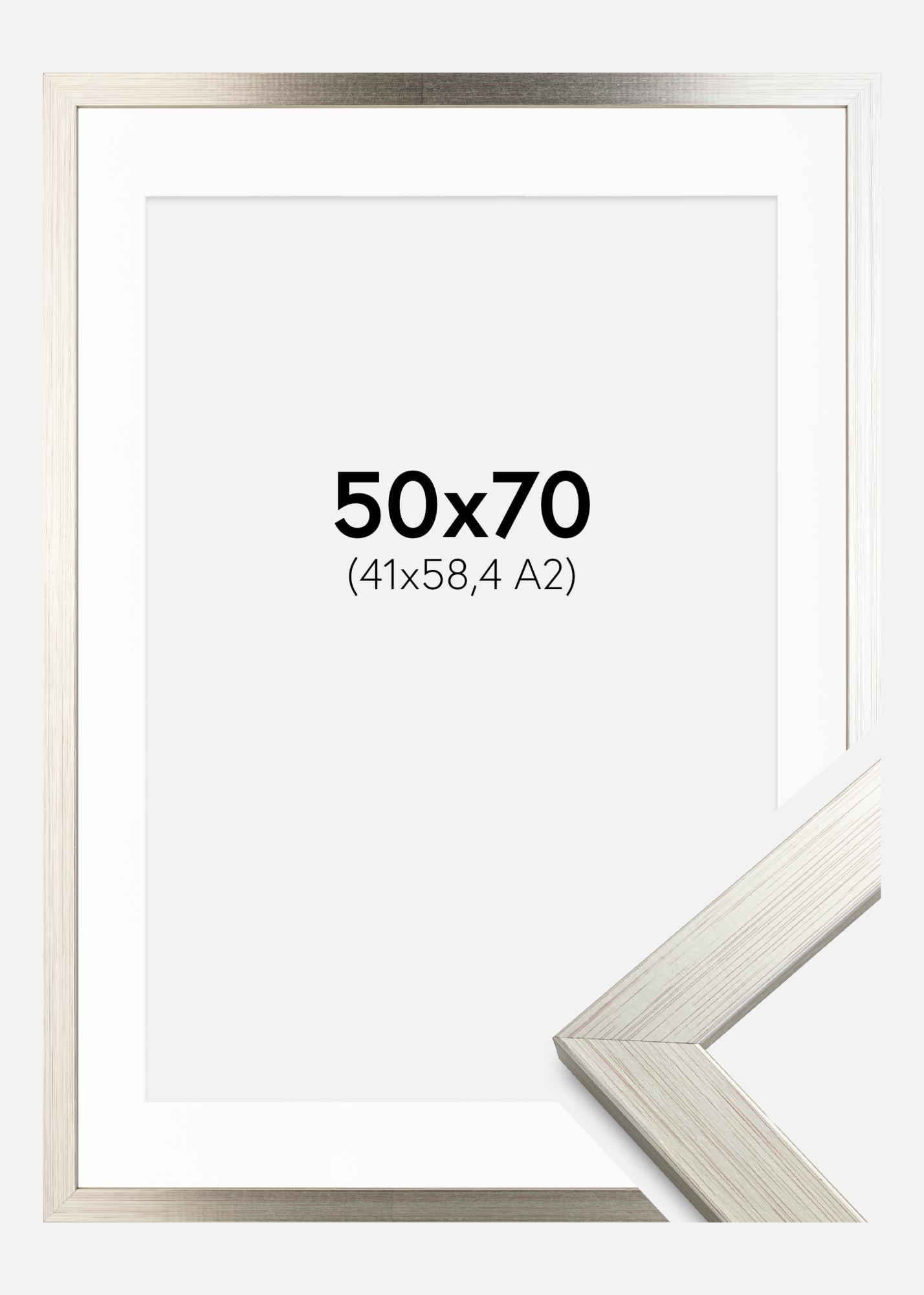 Рамка Сребро Wood 50x70 cm - Паспарту бяло 42x59,4 cm (A2)