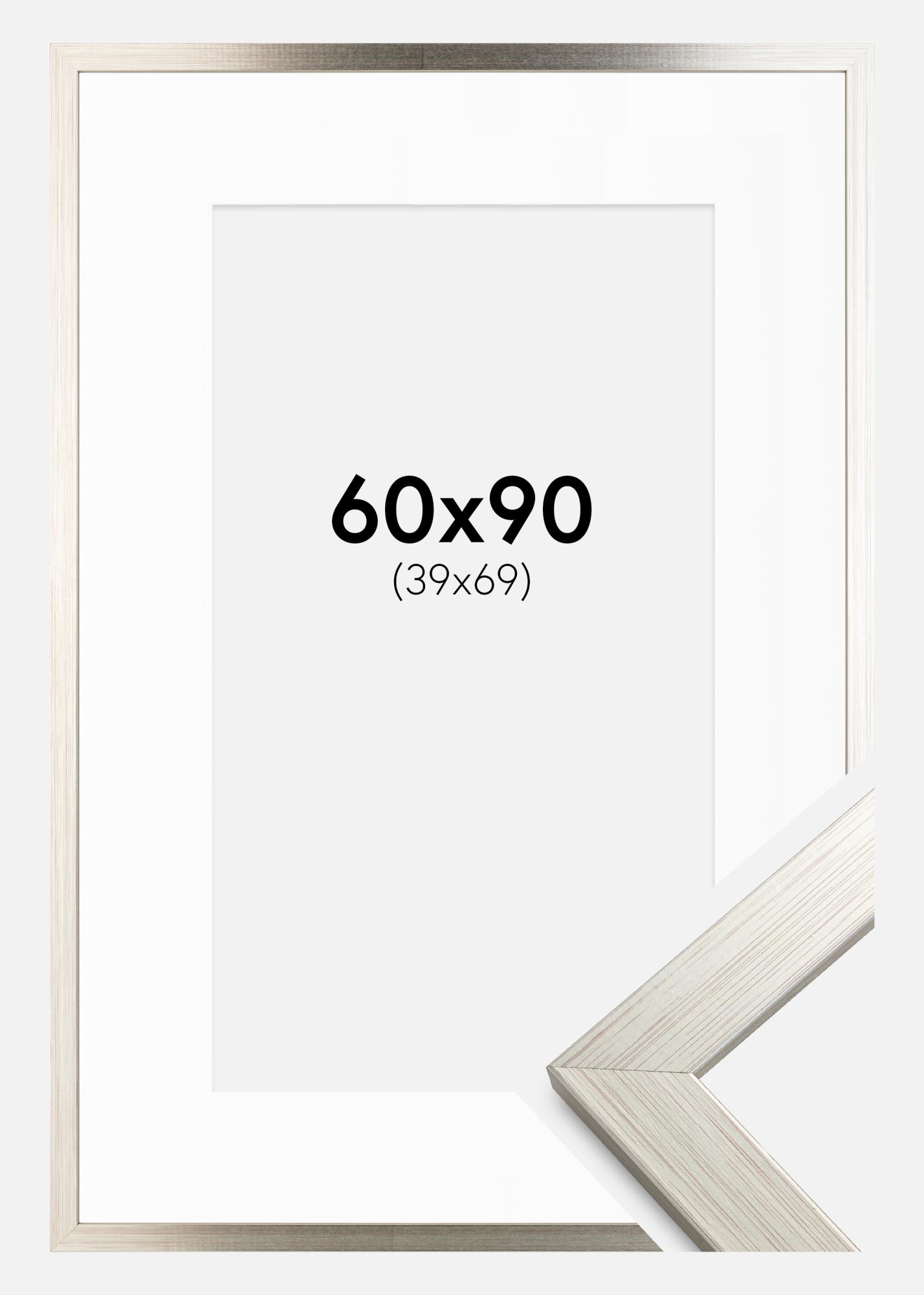 Рамка Сребро Wood 60x90 cm - Паспарту бяло 40x70 cm