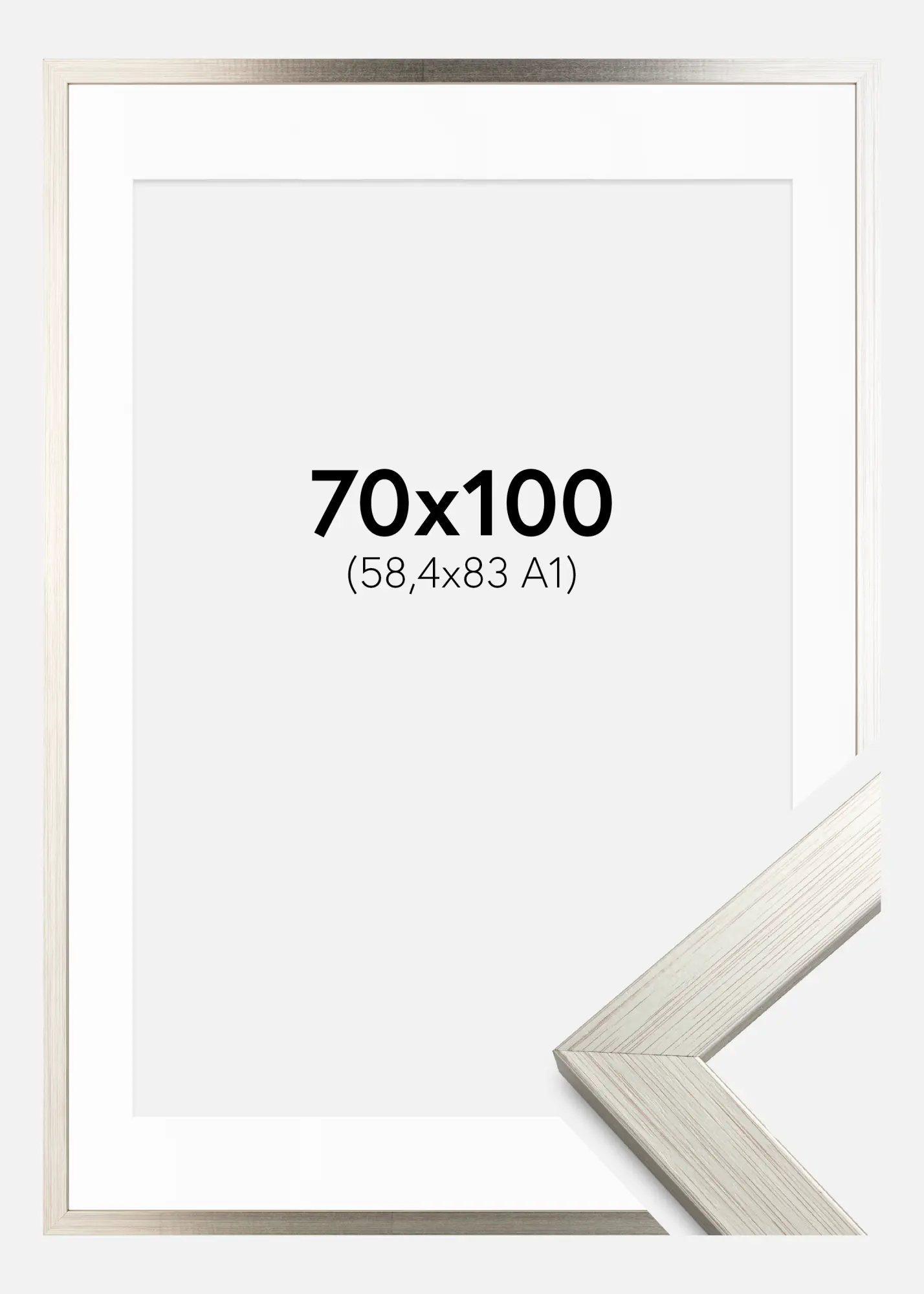 Рамка Сребро Wood 70x100 cm - Паспарту бяло 59,4x84 cm (A1)