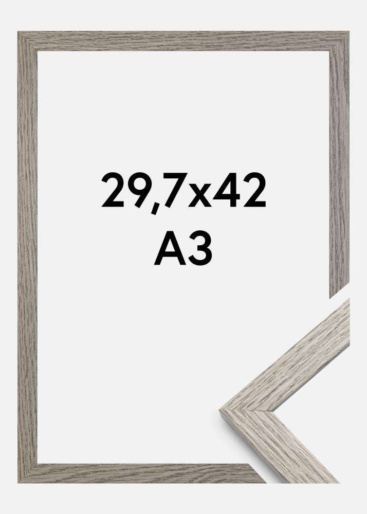 Придайте стилна рамка на вашите плакати и произведения на изкуството с нашата елегантна фоторамка в сиво дъбово дърво. Със своите размери 29,7x42 см (A3) тя пасва перфектно за стандартни размери на отпечатъци и дипломи. Рамката с широка 20 мм рамков списък дава дискретен, но отличителен ръб на вашето произведение на изкуството, докато 14 мм дълбокият профил осигурява изискано дълбочина.