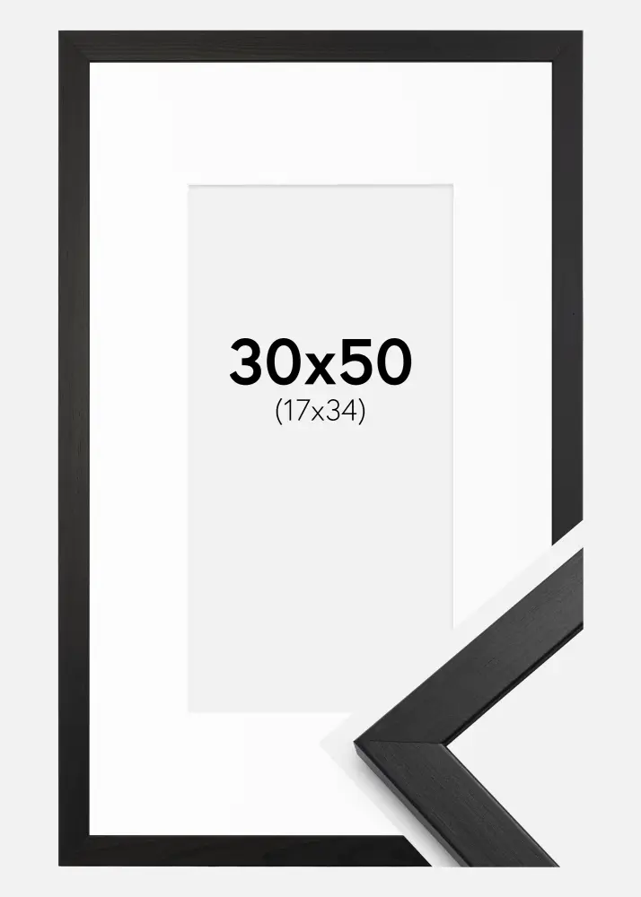 Рамка Стилен Черно 30x50 cm - Паспарту бяло 18x35 cm