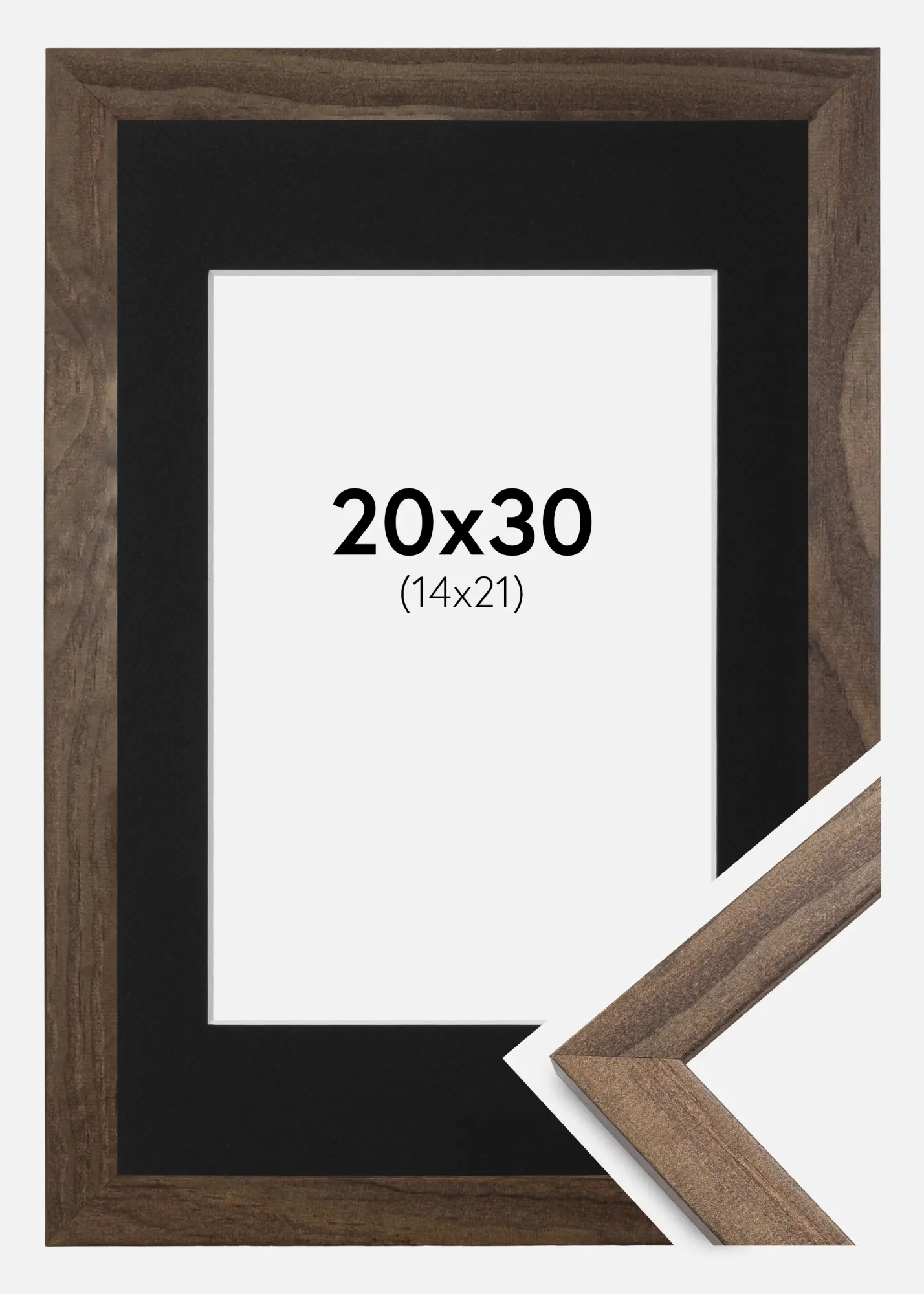 Рамка Стилен орех 20x30 cm - Паспарту Черно 15x22 cm