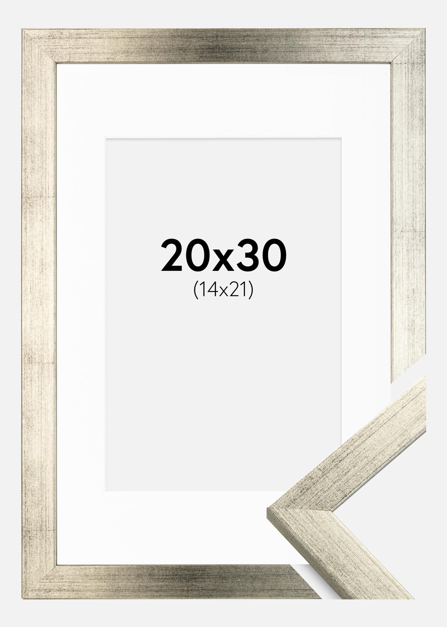 Рамка Стилен Сребро 20x30 cm - Паспарту бяло 15x22 cm