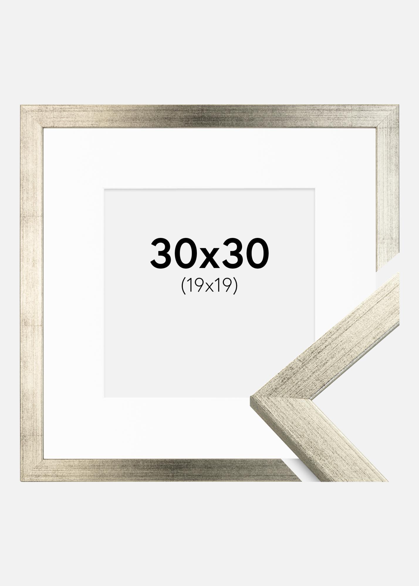 Рамка Стилен Сребро 30x30 cm - Паспарту бяло 20x20 cm