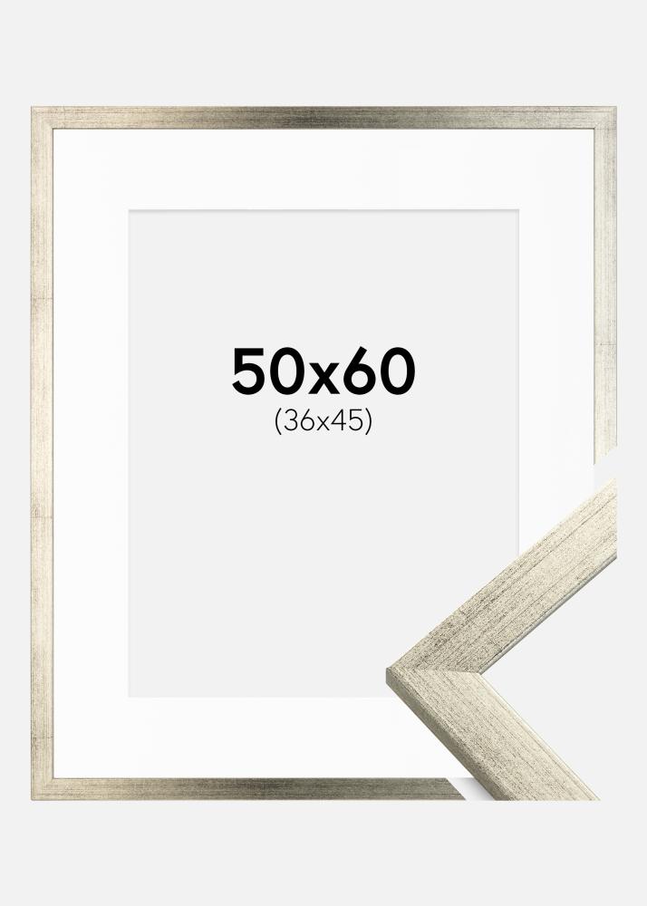 Рамка Стилен Сребро 50x60 cm - Паспарту бяло 37x46 cm