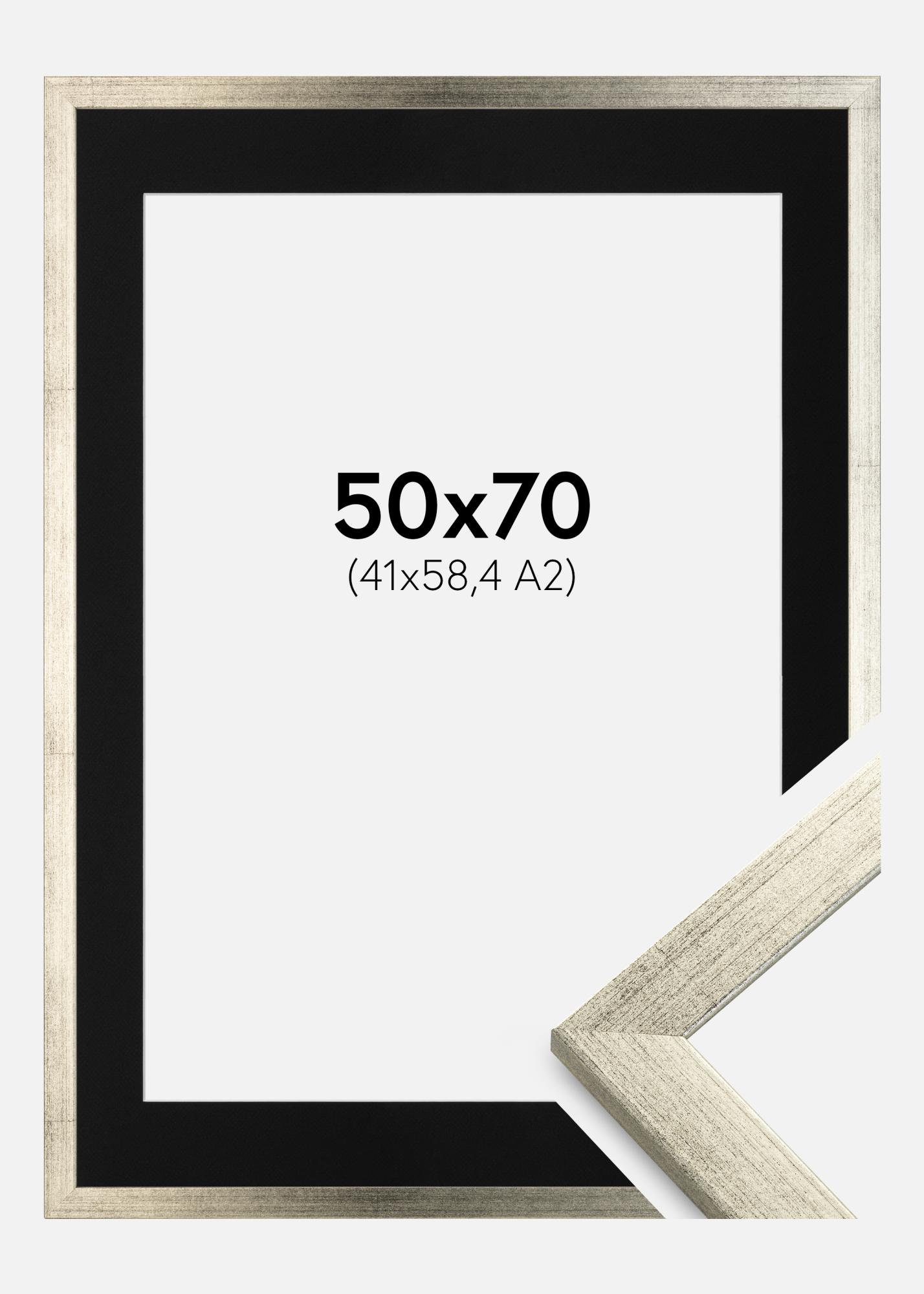Рамка Стилен Сребро 50x70 cm - Паспарту Черно 42x59,4 cm (A2)