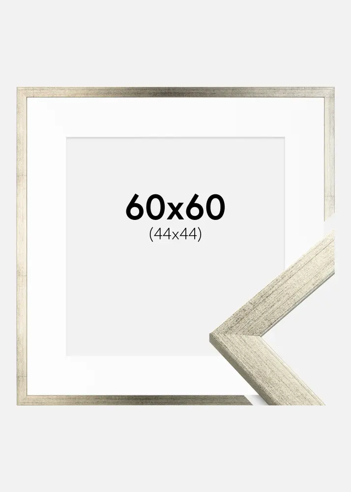 Рамка Стилен Сребро 60x60 cm - Паспарту бяло 45x45 cm