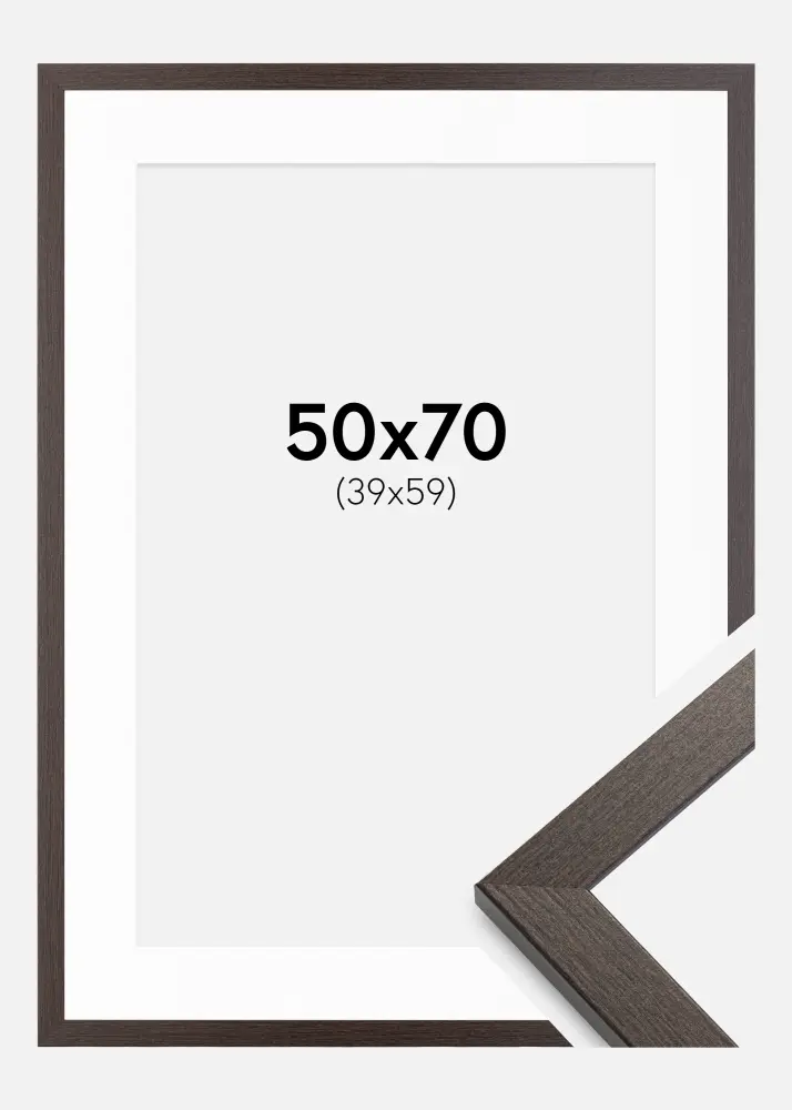 Тази елегантна кафява рамка с паспарту е перфектна за подчертаване на любимите ви снимки с размер 40x60 см. С ширина от 20 мм и дълбочина от 14 мм, тя придава стилно и модерно усещане на дома ви.