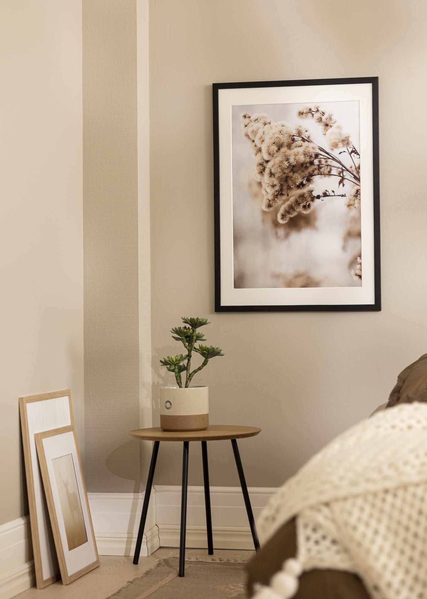 Рамката има ширина от 20 мм и дълбочина от 14 мм, което ѝ придава стабилно и здраво усещане. Матната повърхност в комбинация с черния цвят придава вечен и модерен вид, който пасва на повечето интериорни стилове. Паспартуто не само изтъква изображението, но и предпазва от директно съприкосновение на стъклото с композицията, което може да предотврати повреди и да запази качеството на изображението с времето.