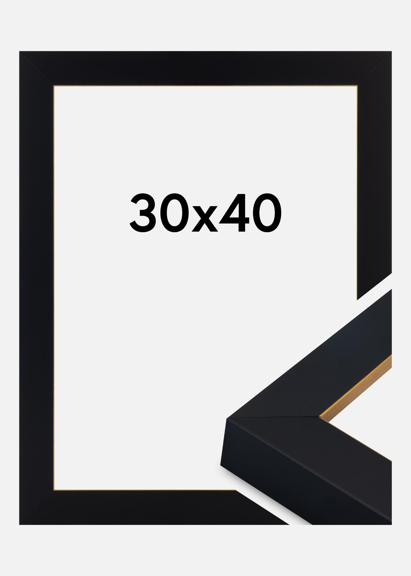 Тази елегантна Рамка за снимки е идеална, за да подчертаете любимите си мотиви с размер 30x40 cm. С модерна и изчистена визия, тя съчетава гладка, лъскава повърхност в Черен цвят с елегантен кант в Злато. Тесният профил придава минималистичен и графичен вид, който поставя мотива в центъра на вниманието – отличен избор както за фотографии, така и за постери.