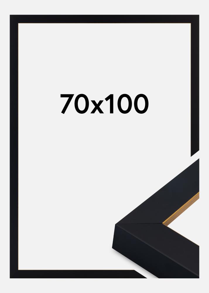 Тази фоторамка е идеална за подчертаване на любимите ви мотиви с размер 70x100 cm. С модерна и изчистена визия, тя съчетава гладка, лъскава повърхност в Черен цвят с елегантен кант в Злато. Тесният профил от 35 mm придава минималистичен и графичен облик, който поставя акцента върху самото изображение.